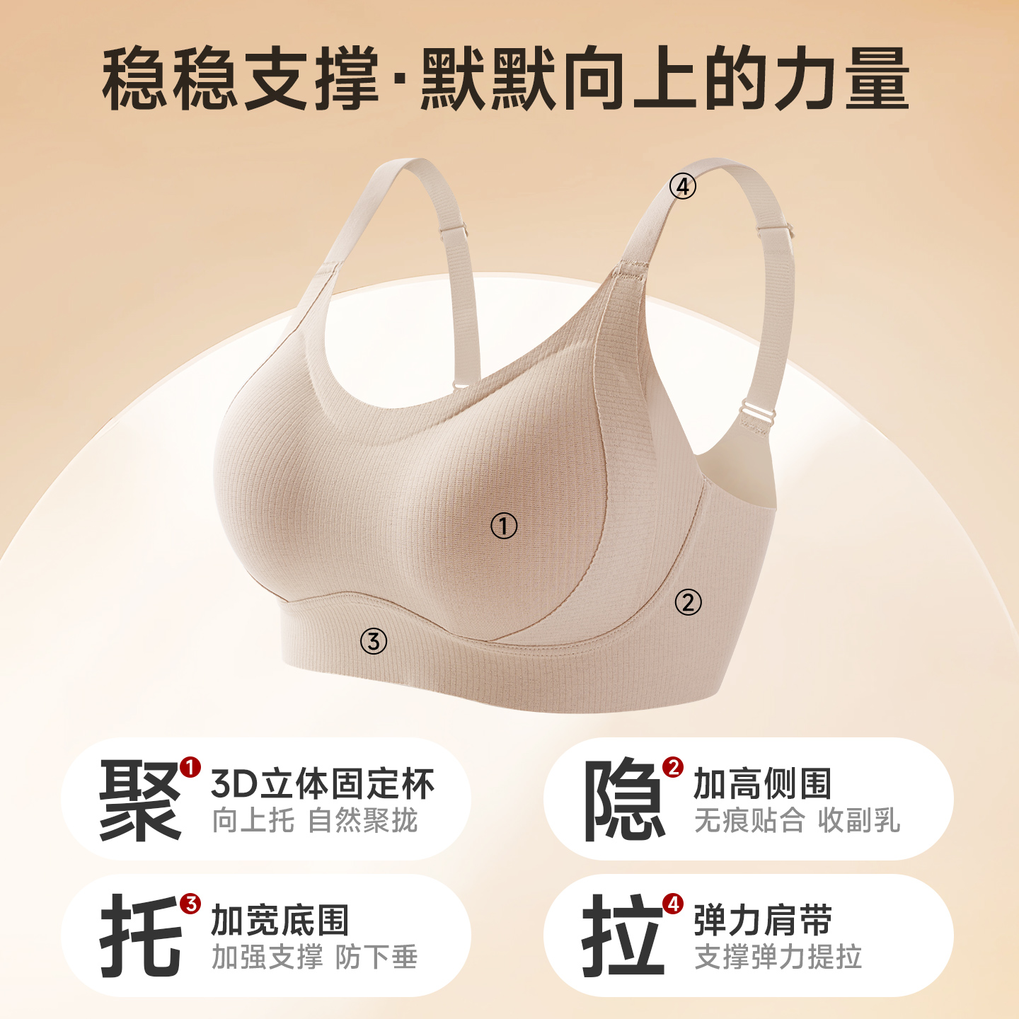 猫人内衣女无痕聚拢上托收副乳防下垂大胸调整型细肩带美背文胸罩