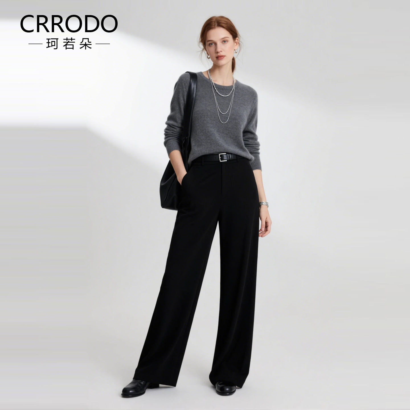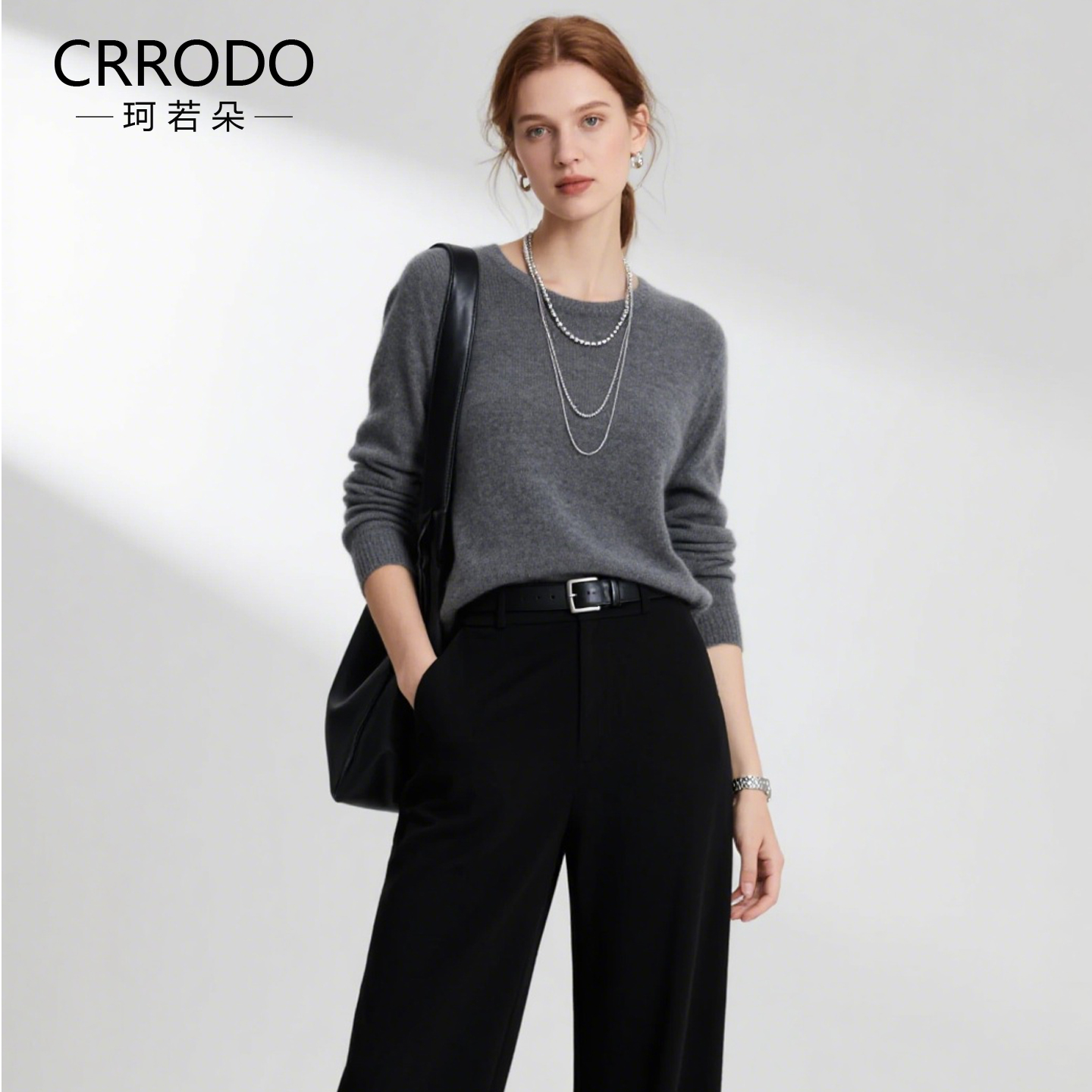 高级感通勤打底衫 新款 上衣毛衣 女含羊毛2025秋季 灰色圆领针织衫