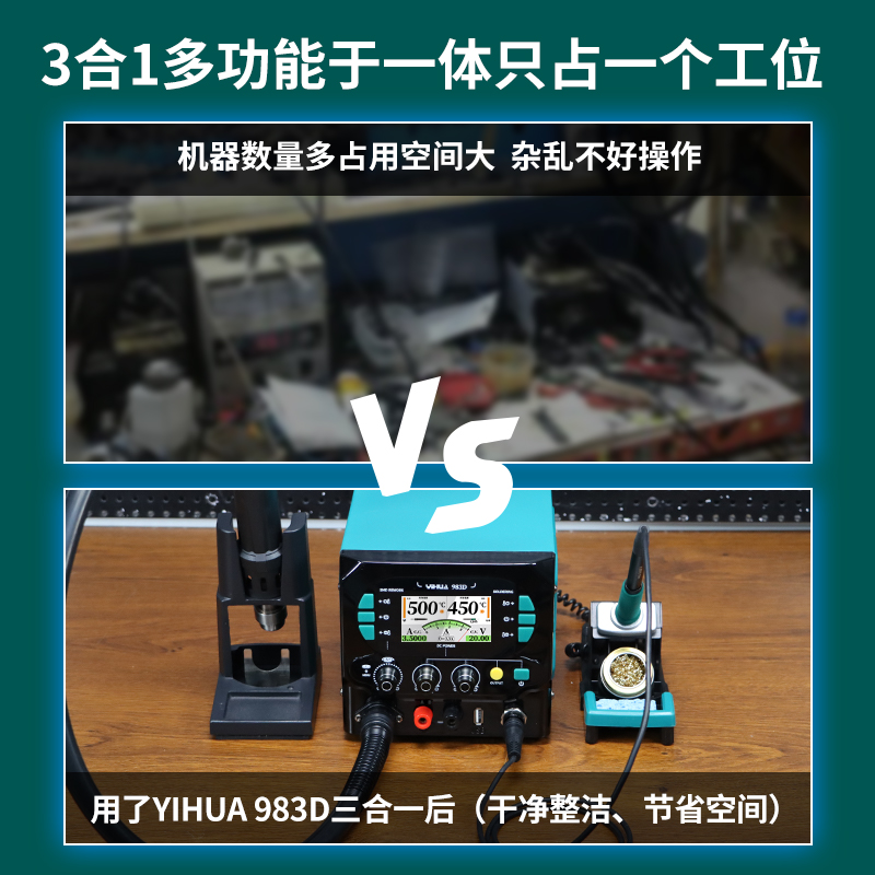 谊华983D热风枪电源电烙铁三合一1100W大功率热风枪直流稳压电源