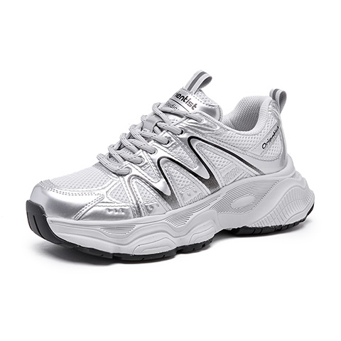 银色百搭休闲运动鞋 爆款 小个子增高2025新款 女秋季 松糕厚底老爹鞋