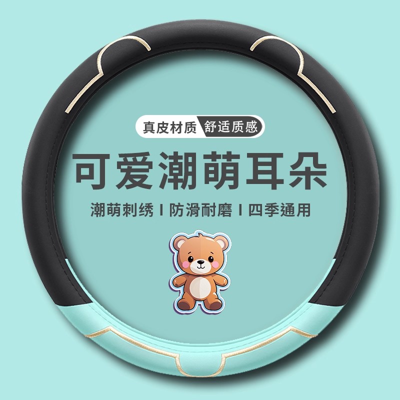 防烫神款 饰皮革滑把套夏季 耐磨卡通装 男女通用汽车方向盘套女四季