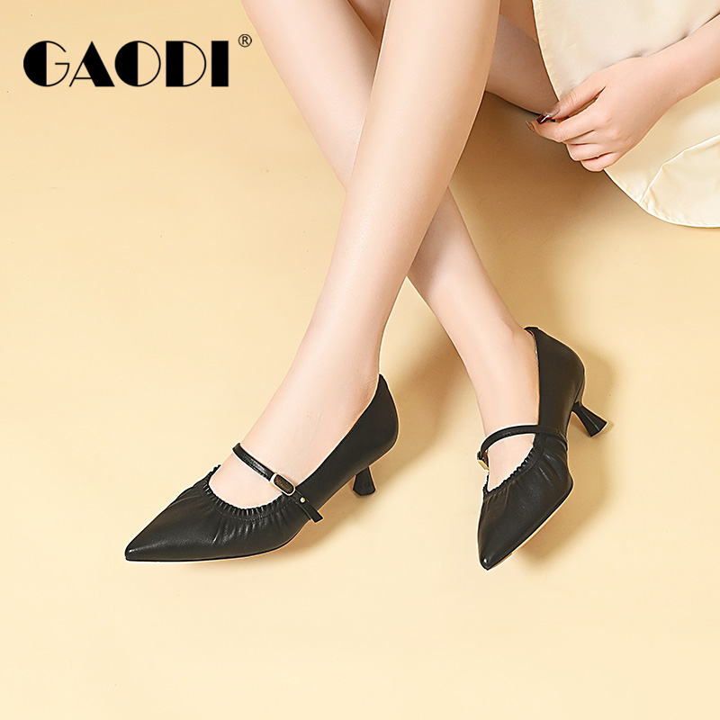 气质水钻真皮工作鞋 小羊皮粗跟单鞋 法式 浅口晚晚鞋 女2025春秋新款