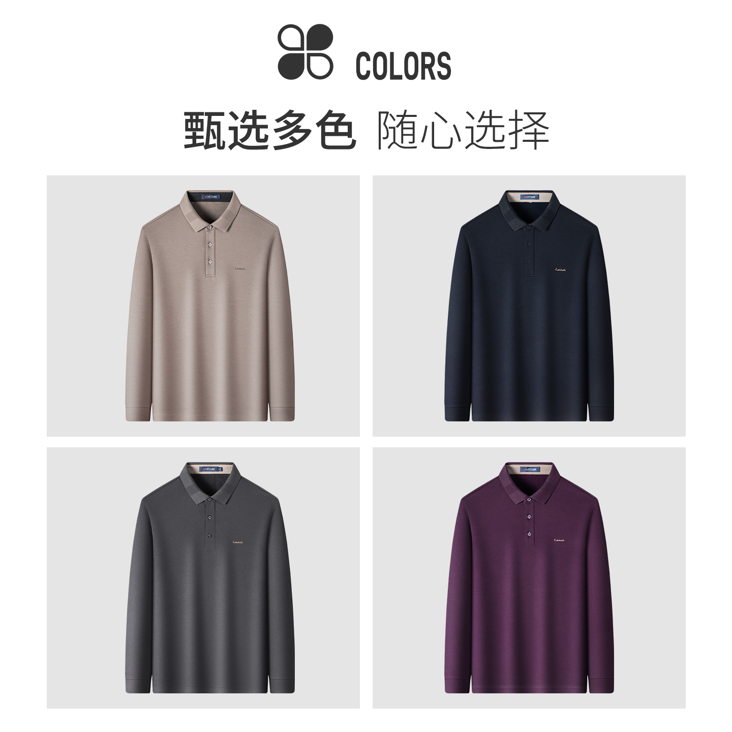 新款 体恤胖子宽松免烫抗皱POLO衫 大码 无感空气格翻领长袖 男士 秋季