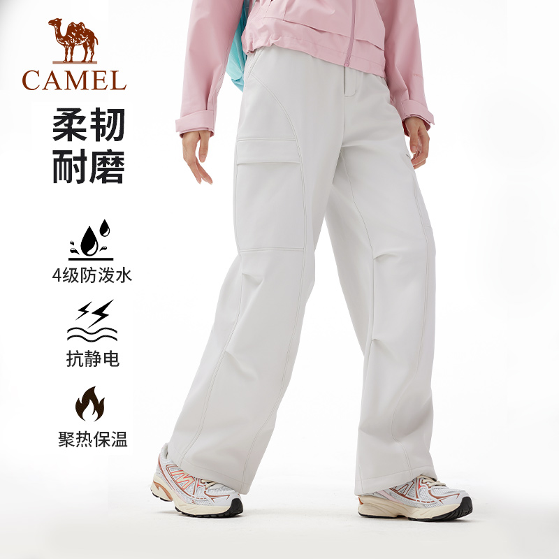 加绒保暖休闲长裤 骆驼女装 防泼水运动徒步裤 2025秋冬新款 子 软壳裤