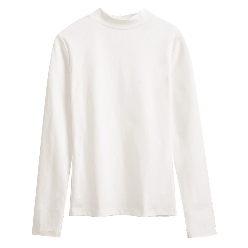 t恤半高领修身 上衣女外穿中领长袖 内搭春秋薄款 小立领白色打底衫