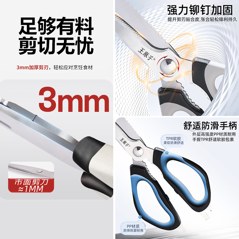 王麻子厨房剪刀高硬度锋利强力剪鸡鸭鹅骨头专用刀不锈钢多功能剪