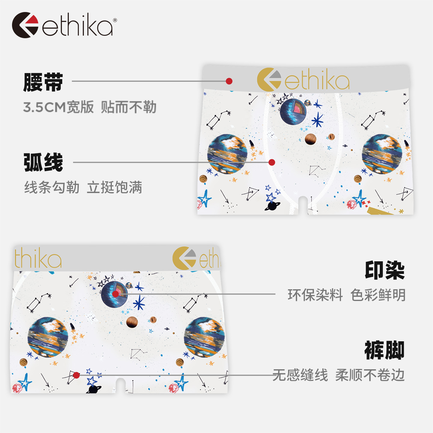 科摩罗卡 透气凉感平角裤 美式 内裤 防磨 印花运动速干男士 Ethika