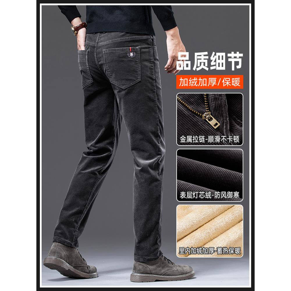 子冬装 秋冬加绒加厚男士 中年爸爸裤 宽松直筒条绒冬季 灯芯绒休闲裤