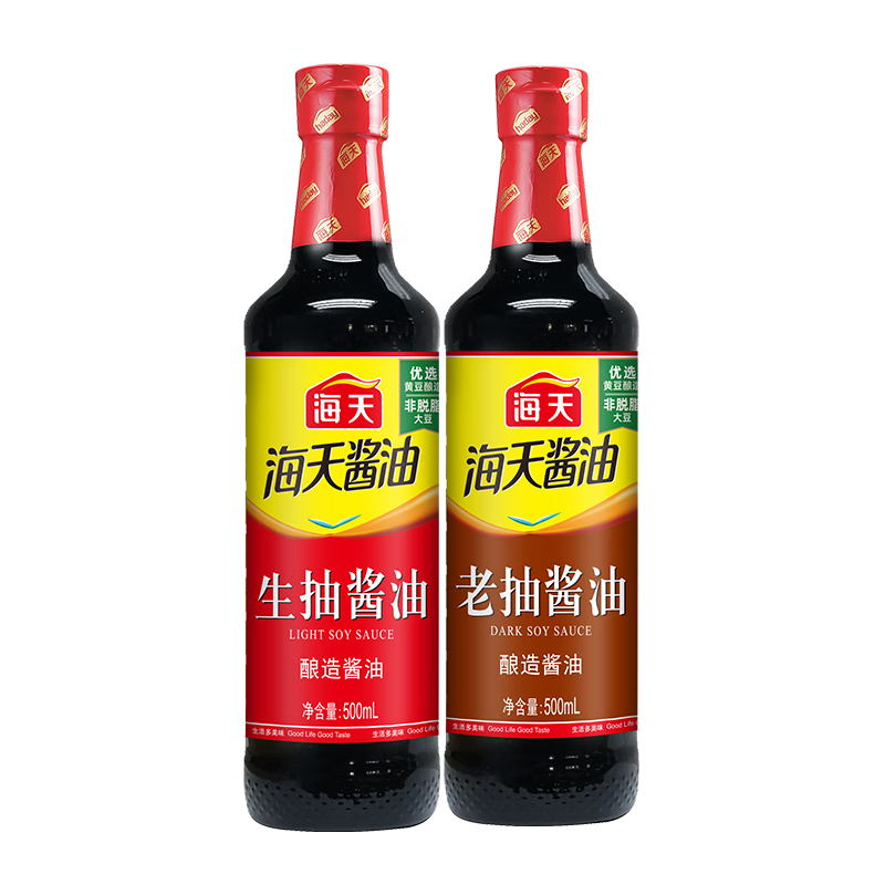 海天生抽老抽酿造酱油500ml家用凉拌炒菜红烧肉蒸鱼调料组合尝鲜