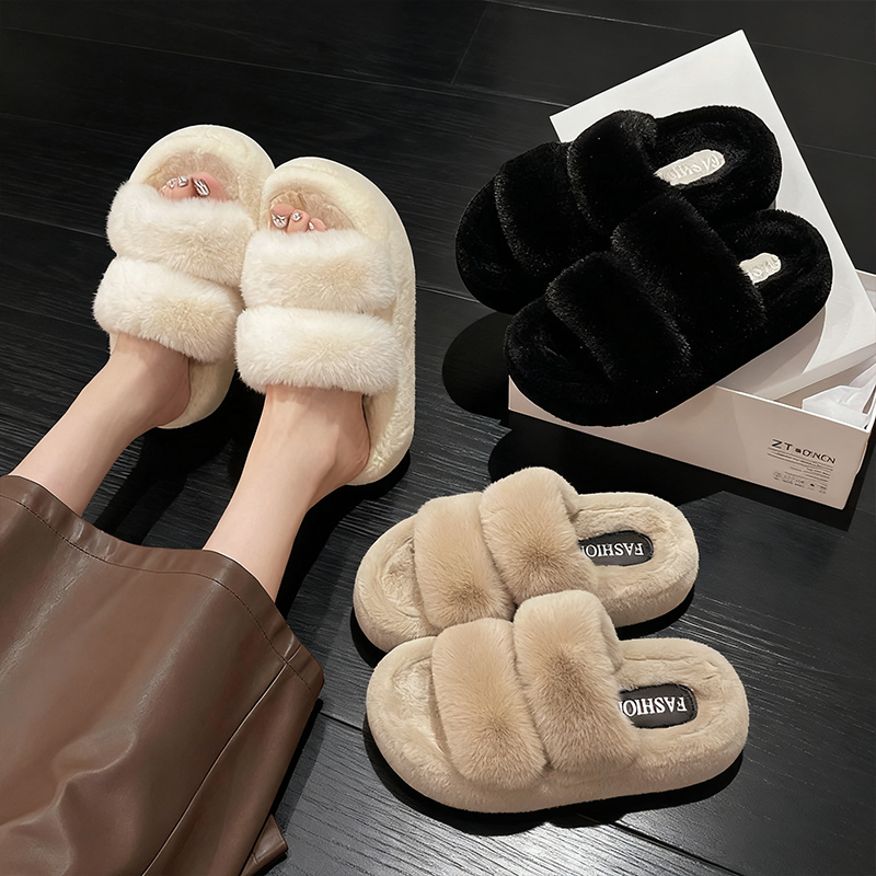 居家用防滑保暖厚底毛毛绒拖鞋 男女情侣款 外穿 棉拖鞋 买一送一冬季