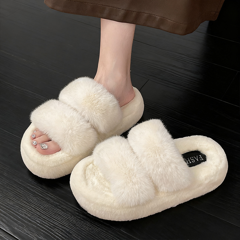 毛毛绒室内家居保暖鞋 厚底防滑2025新款 子居家 女士秋冬季 棉拖鞋