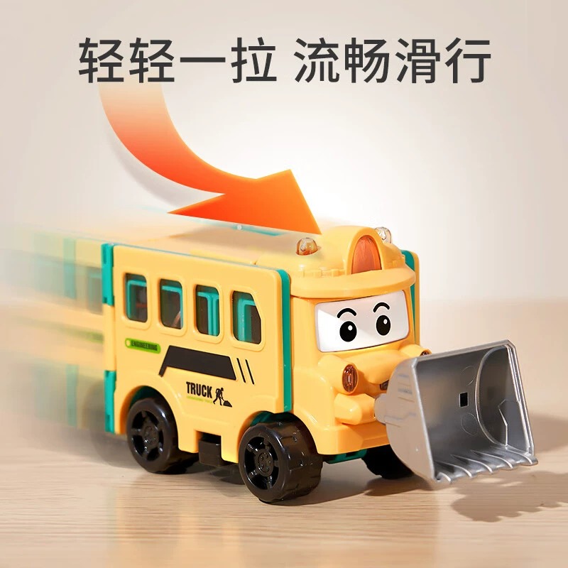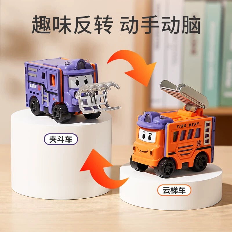 百变反转变形翻转玩具校巴工程车惯性回力小汽车模型男孩生日礼物