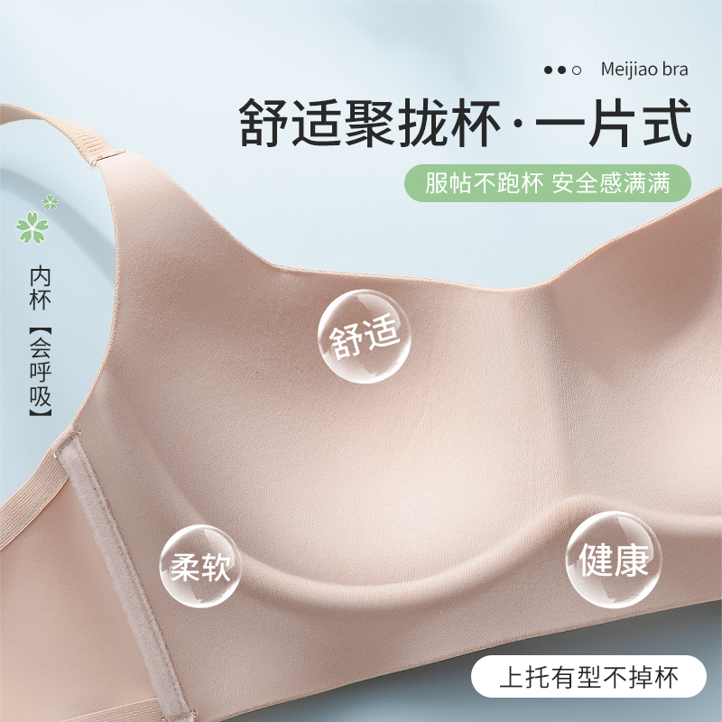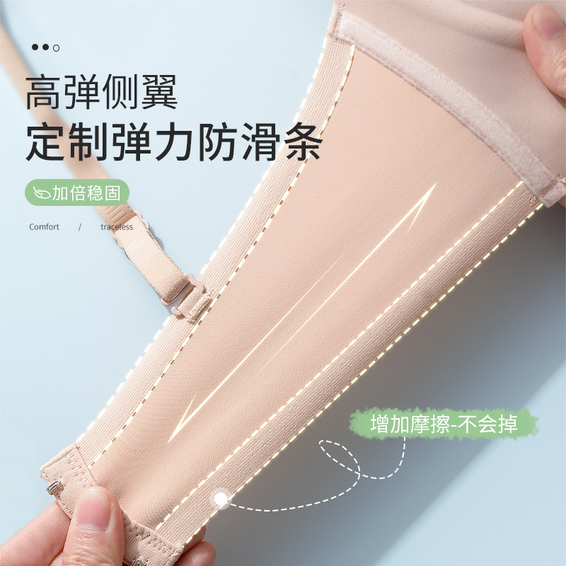 无痕内衣女大胸显小薄款 固定杯冰丝凉感果冻条软支撑聚拢文胸罩夏