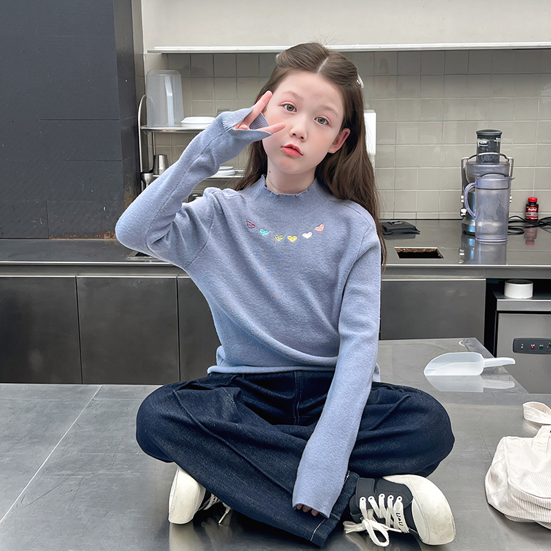 新款 女童洋气半高领修身 2025冬装 儿童上衣打底衫 毛衣大童针织衫