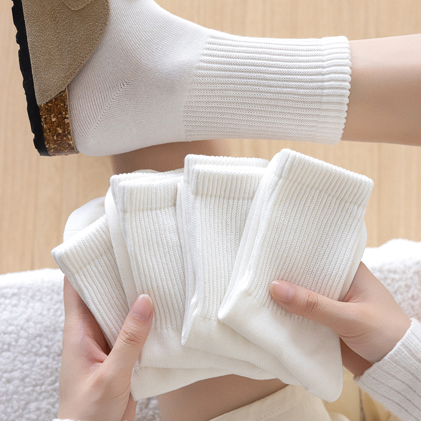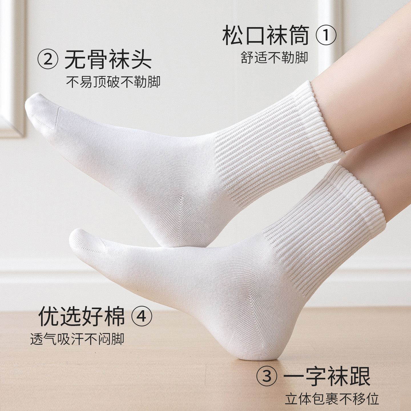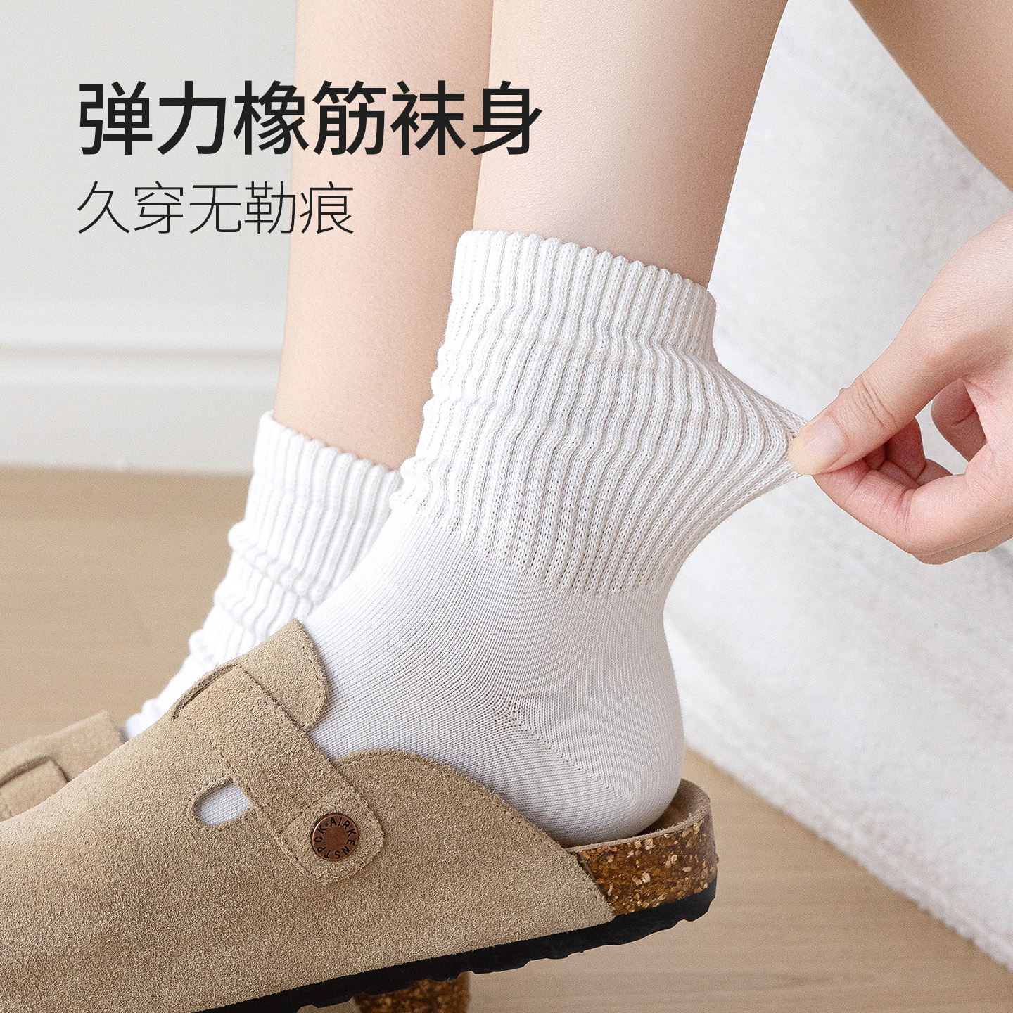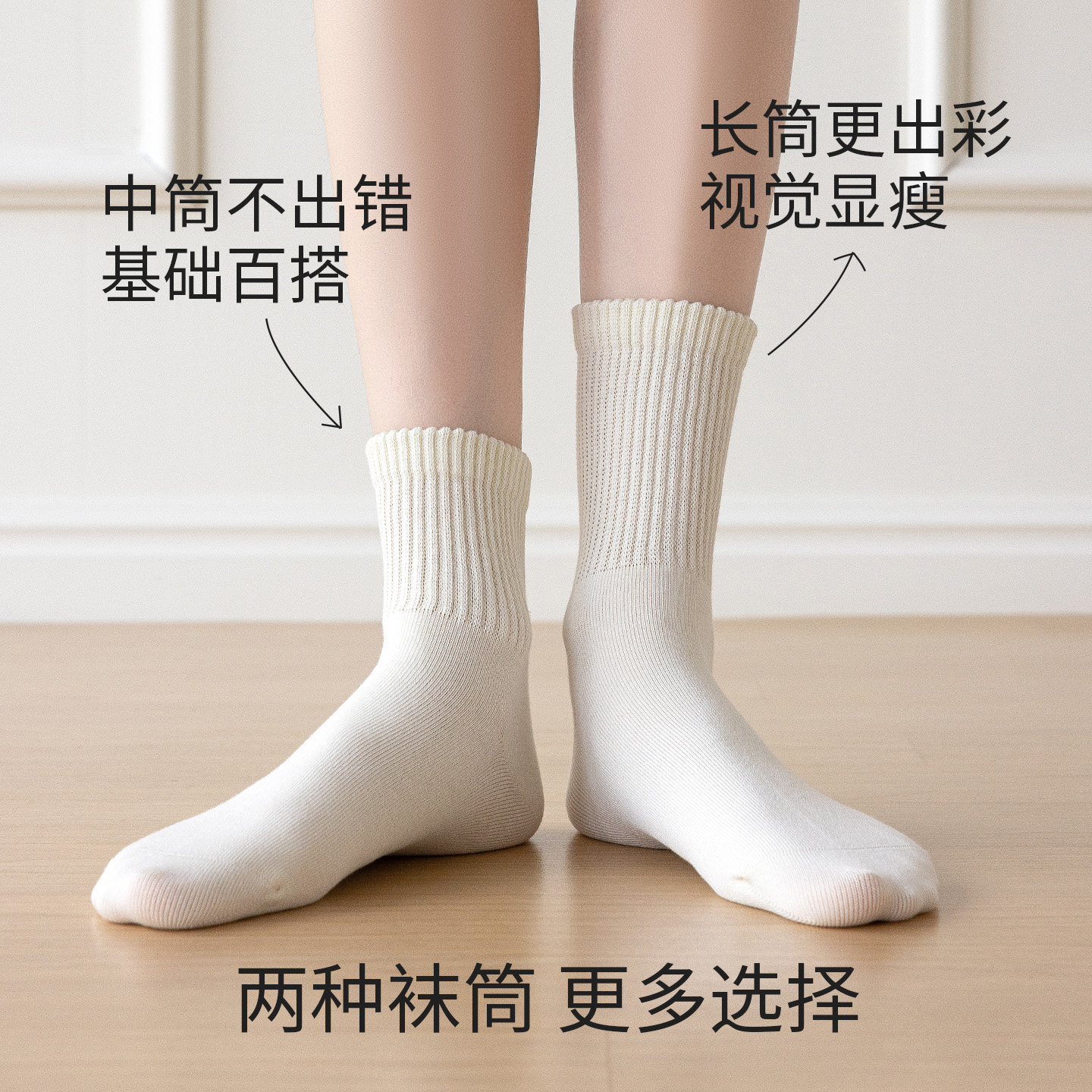 卡拉美拉袜子女中筒袜短筒袜女士百搭纯色白袜高弹棉袜无骨松口袜