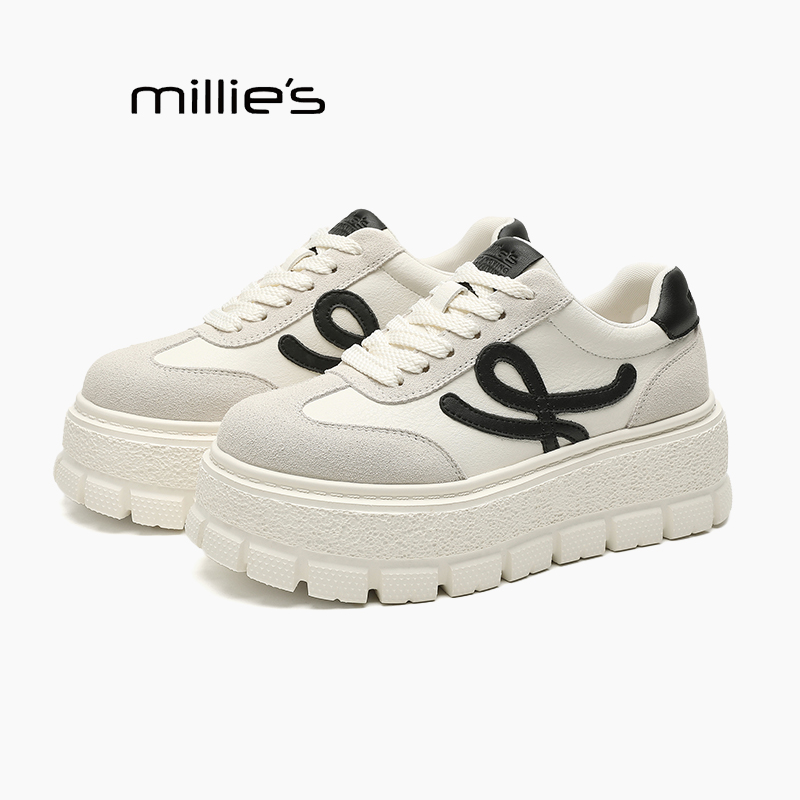 女百搭圆头系带休闲板鞋 MILLIE 厚底小白鞋 妙丽2025新款 显脚小Q
