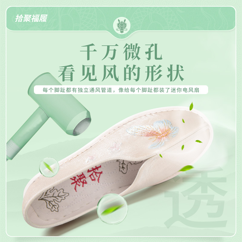 透气民族风汉服鞋 拾聚老北京布鞋 春秋休闲妈妈鞋 千层底绣花鞋 女鞋