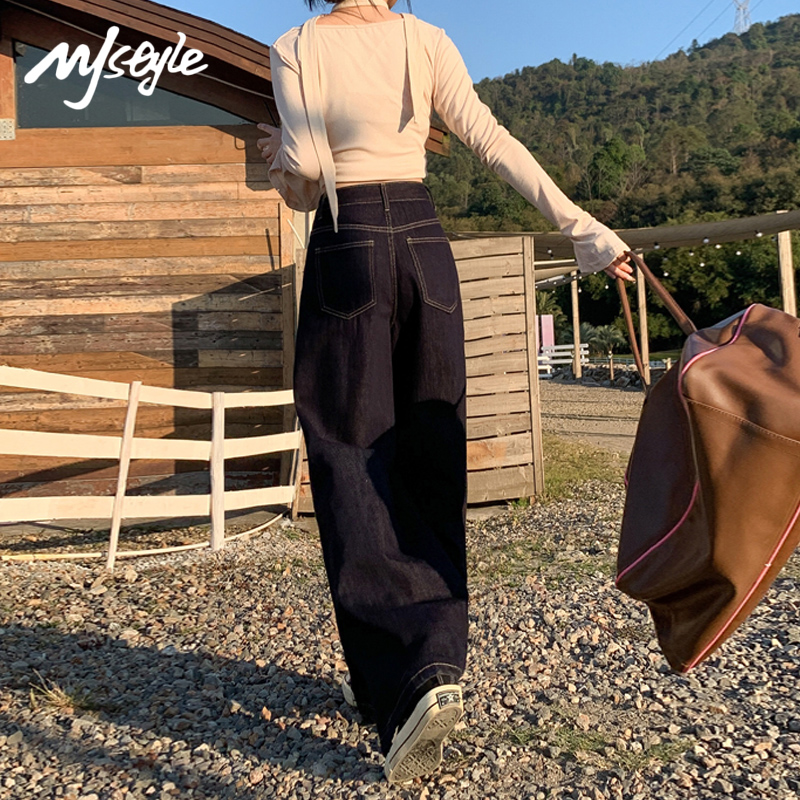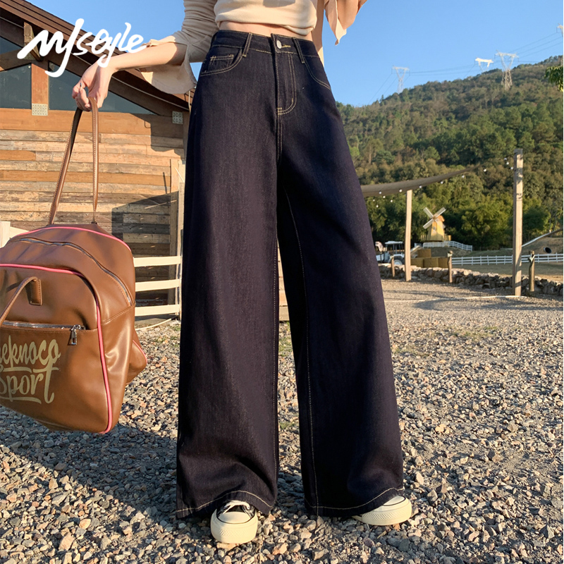 STYLE天丝深蓝牛仔裤 子高腰小个子宽松阔腿裤 女2025秋季 裤 新款