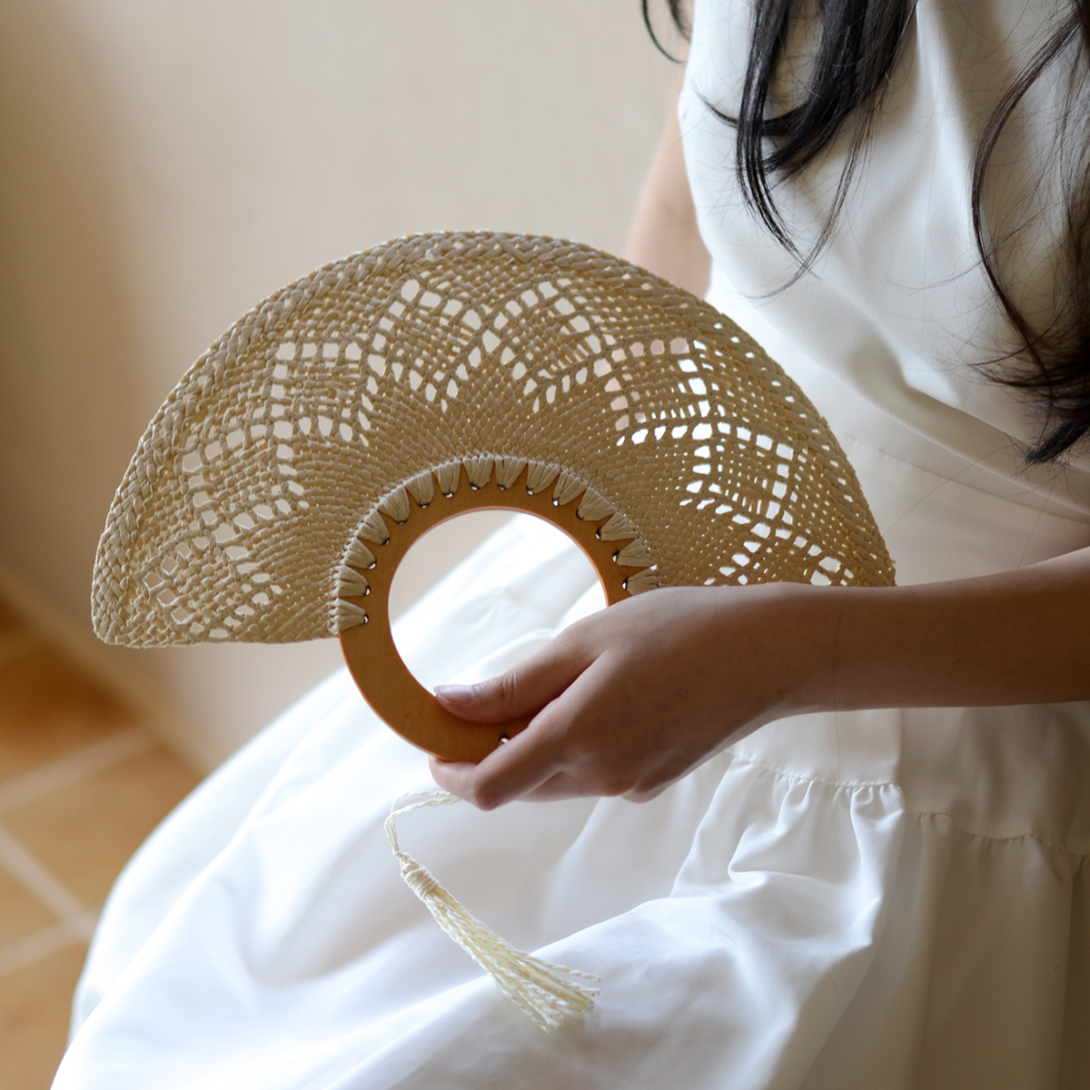 oakliving度假风手工编织扇子高级感流苏装 饰搭配非遗手拿扇子
