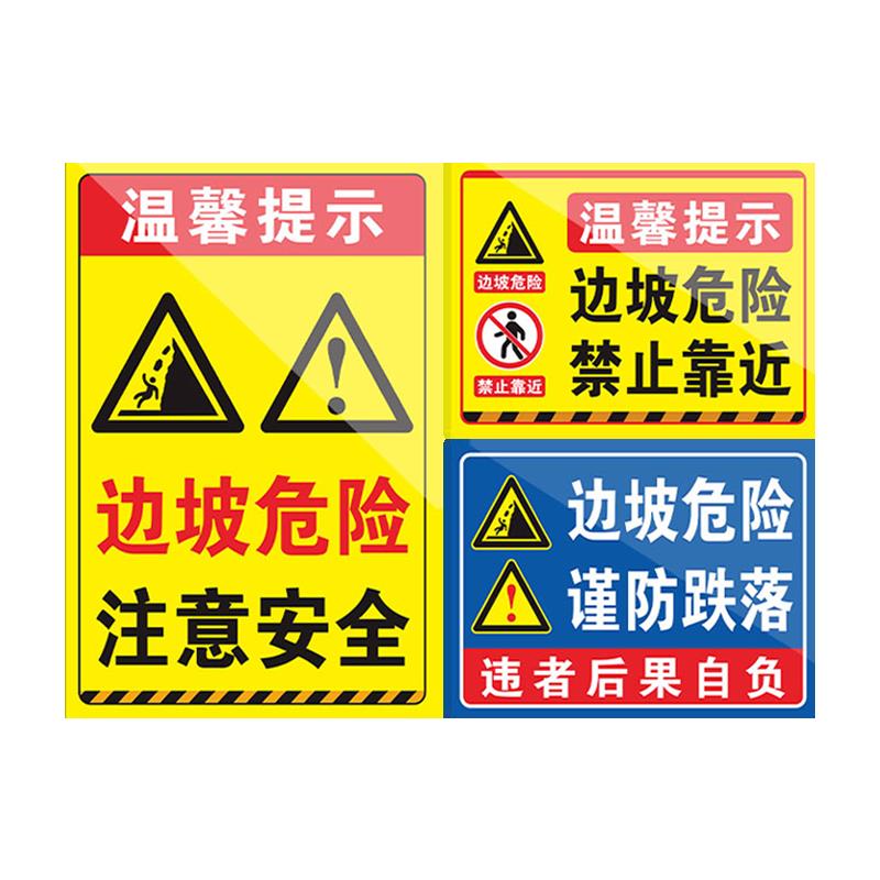 边坡危险小心落石提示牌标识警示牌当心塌方注意安全警告户外防水贴纸PVC板铝板警示牌