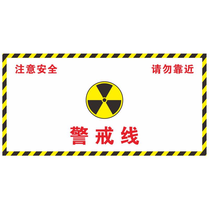 当心电离辐射磨砂地贴红灯亮时请勿靠近停留注意安全请在黄线外排队等候拍片室放射科CT室警戒线警示标识贴纸