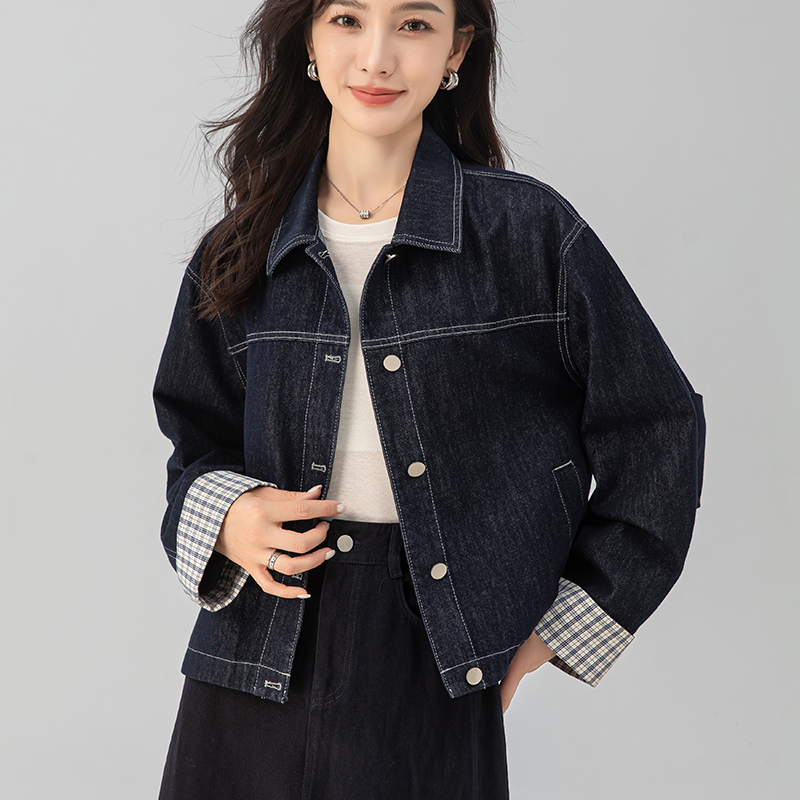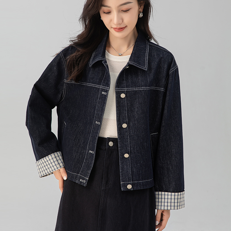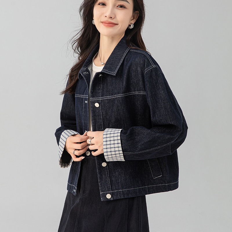 上衣男女 复古翻领夹克格子拼接短外套潮休闲工装 Achock官方店