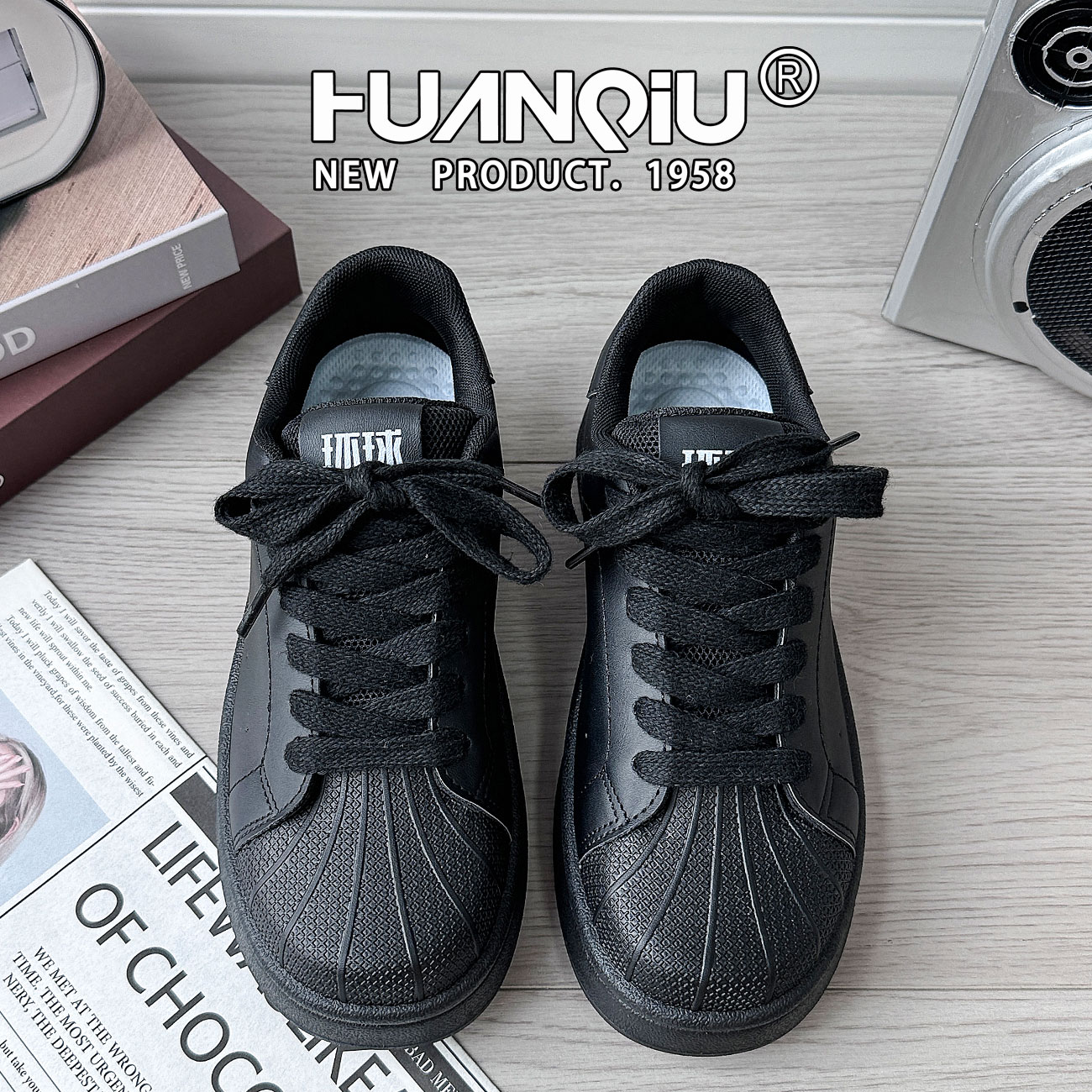 厚底百搭低帮学生运动小黑鞋 秋季 子 女2025新款 环球贝壳头黑色板鞋