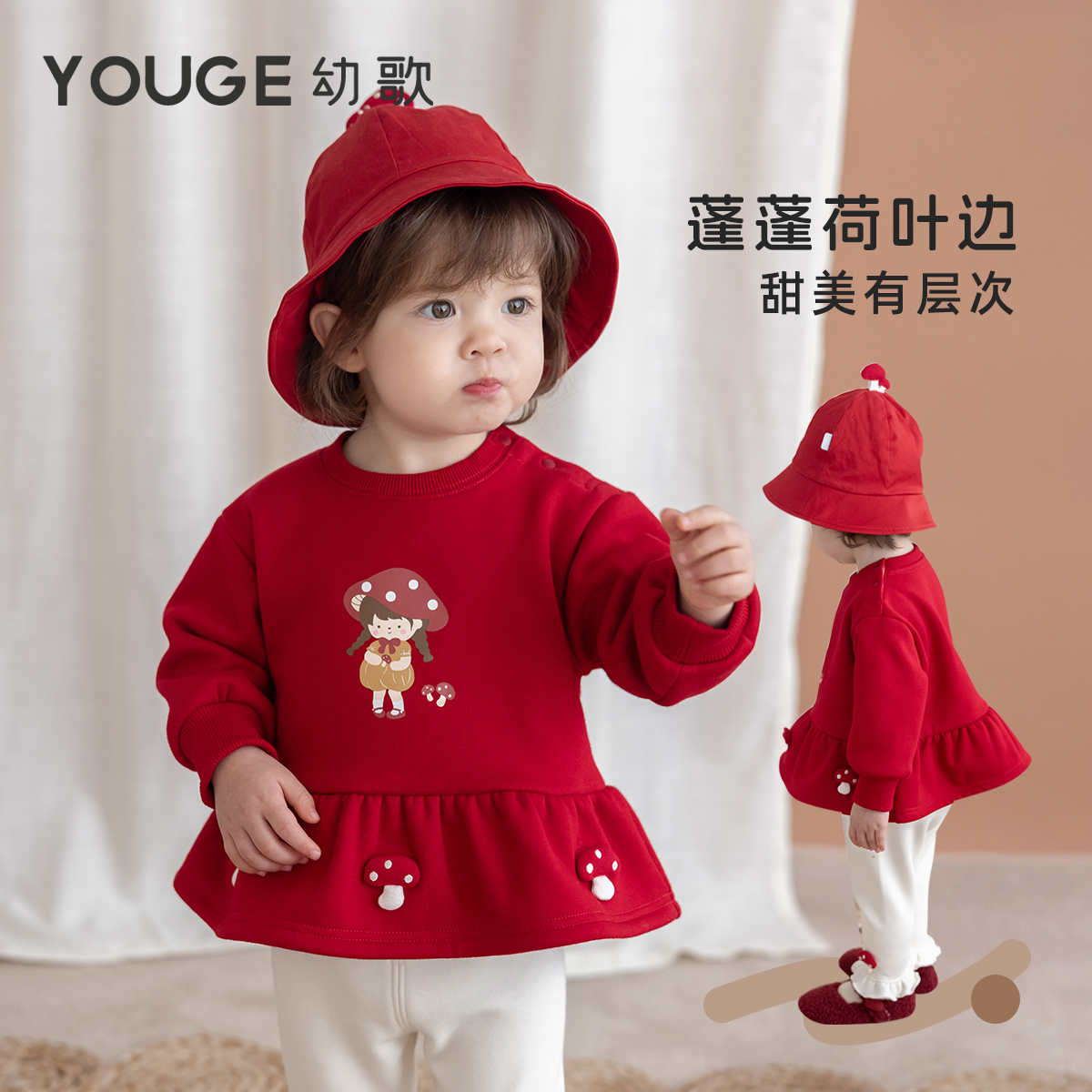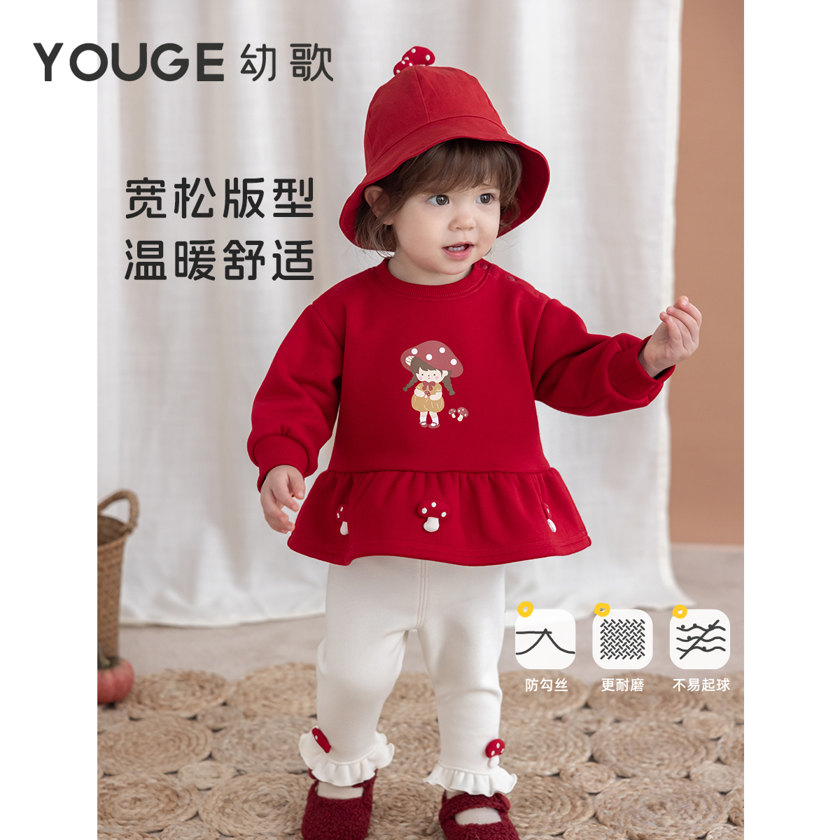 柔软加绒卫衣裙女宝宝舒适打底裤 新款 两件套 婴幼儿秋季 YOUGE幼歌