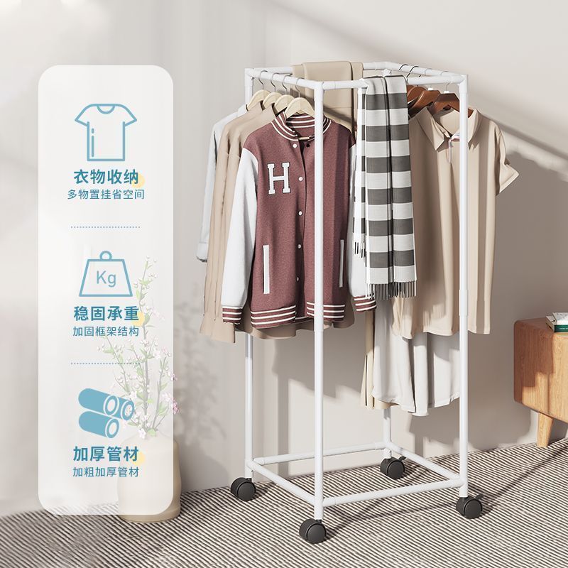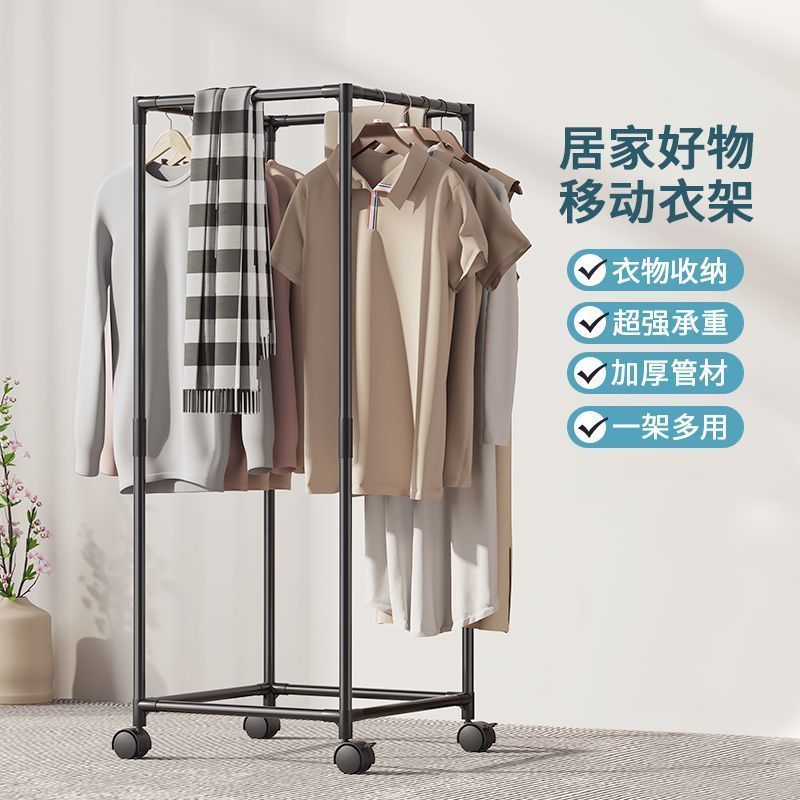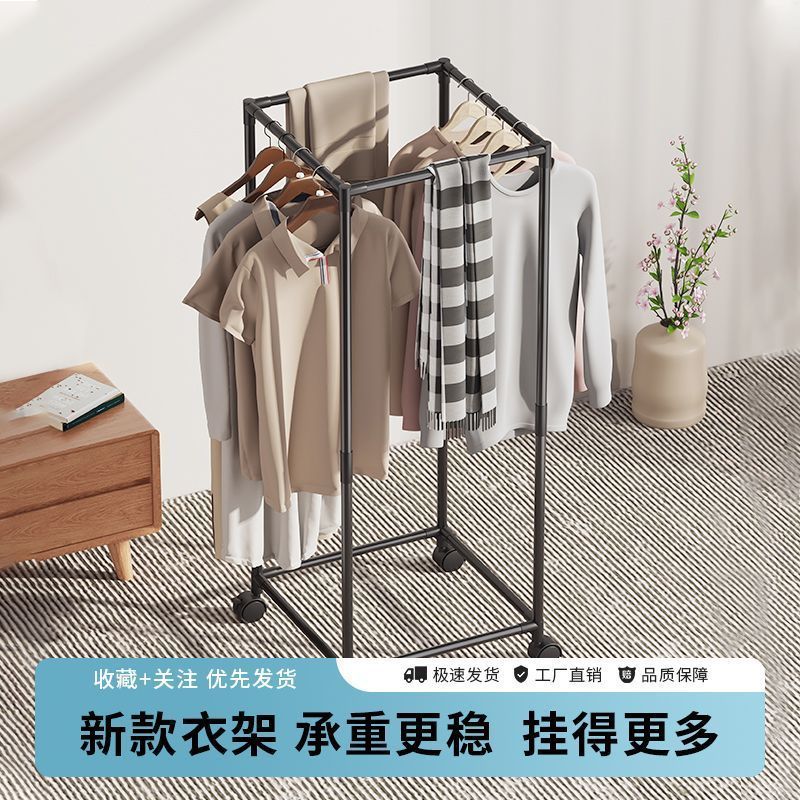 晾衣架落地家用卧室挂衣服折叠单杆简易室内宿舍移动晒凉衣帽架子