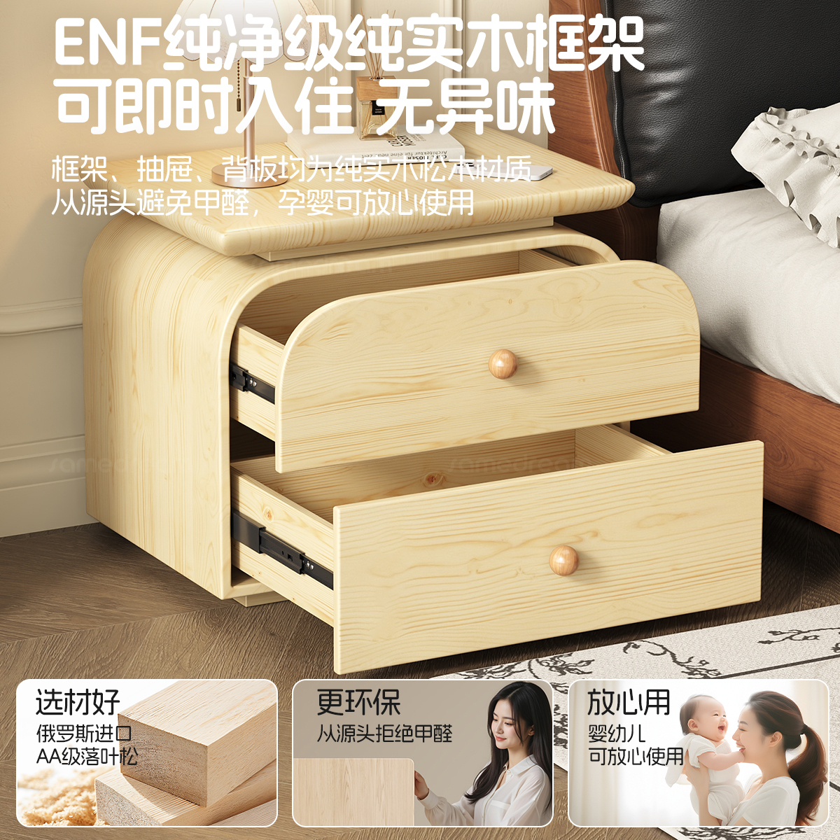 实木床头柜2025新款 简约现代小型轻奢高级感奶油风卧室家用床边柜