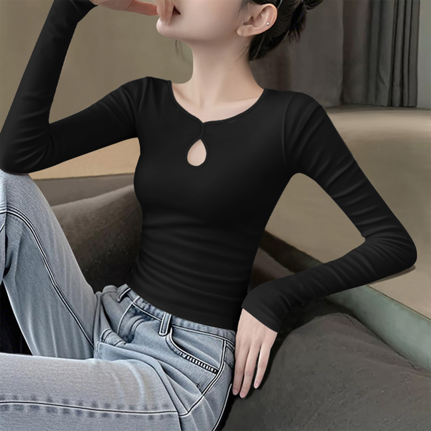 上衣 女不规则设计感秋冬打底内搭修身 2025新款 白色正肩水滴领长袖