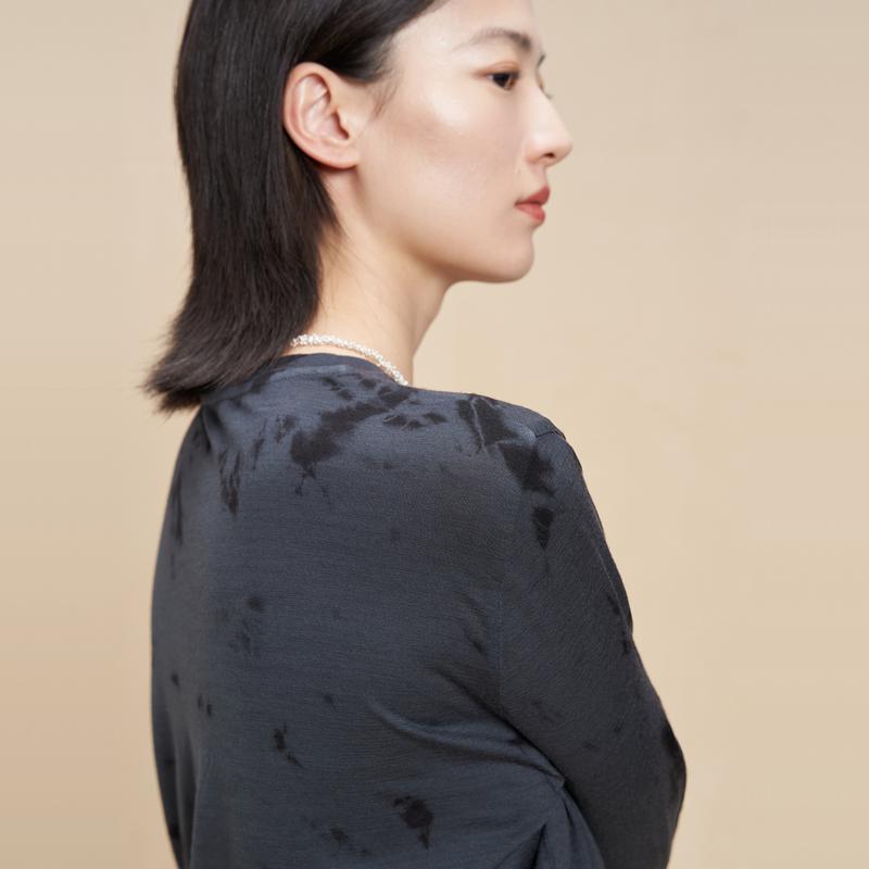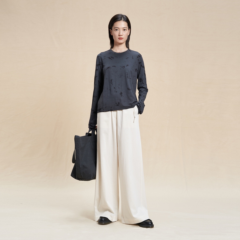 25秋女士气质休闲成衣染针织圆领长袖 素然WHM T恤 新品
