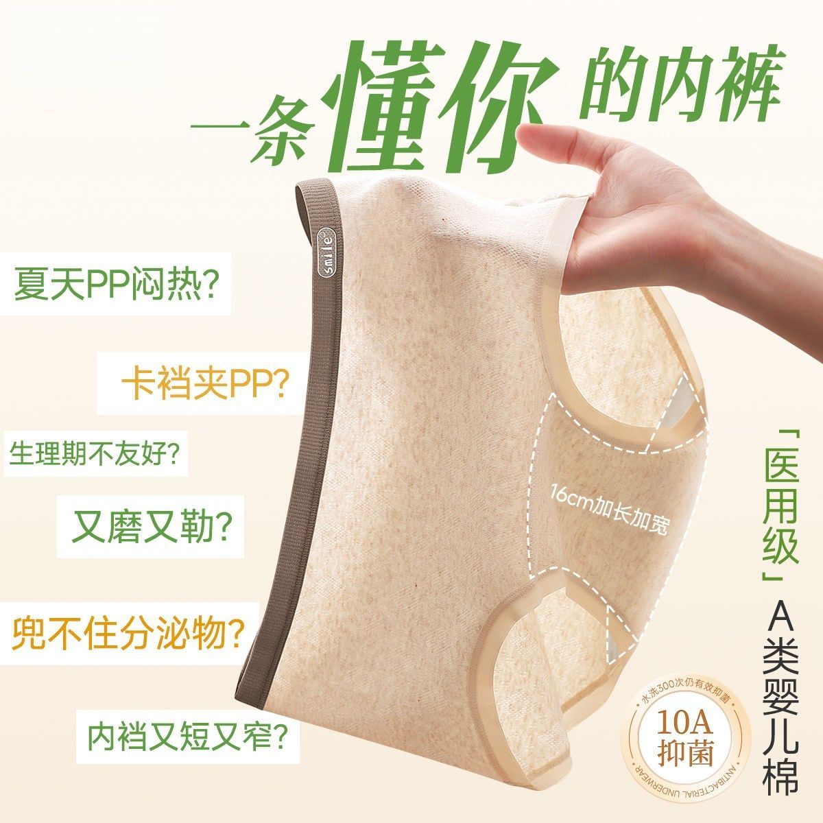 女士女生三角裤 大码 高腰无痕抗菌加长裆新款 菇娘家零染棉纯棉内裤