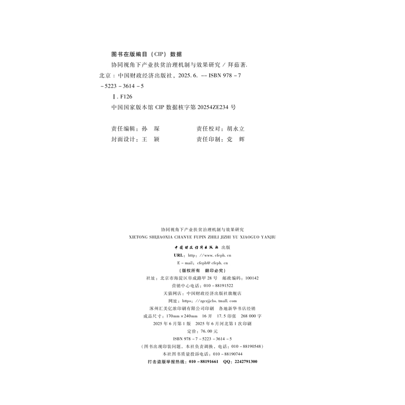协同视角下产业扶贫治理机制与效果研究拜茹经济理论中国财政经济出版 社新华书店正版
