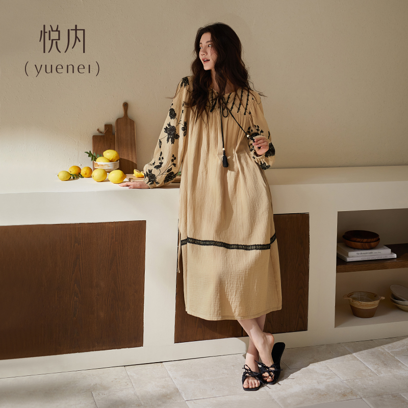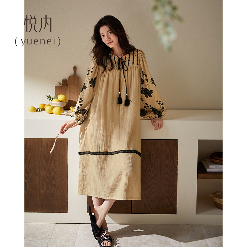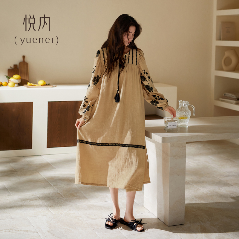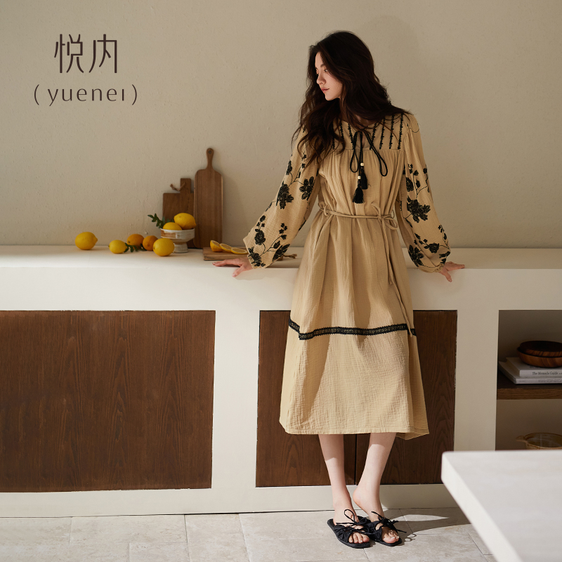 浴袍秋冬家居服 睡衣休闲慵懒风睡裙大码 轩靓睡袍女春秋季 纯棉长袖