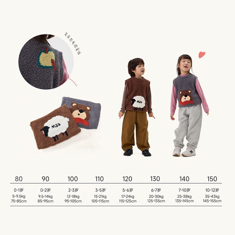 上衣 保暖可外穿抑菌无袖 Q21儿童背心半边绒男女孩宝宝秋冬季 新款