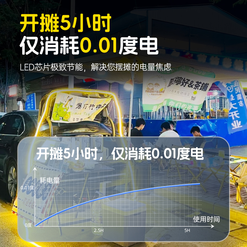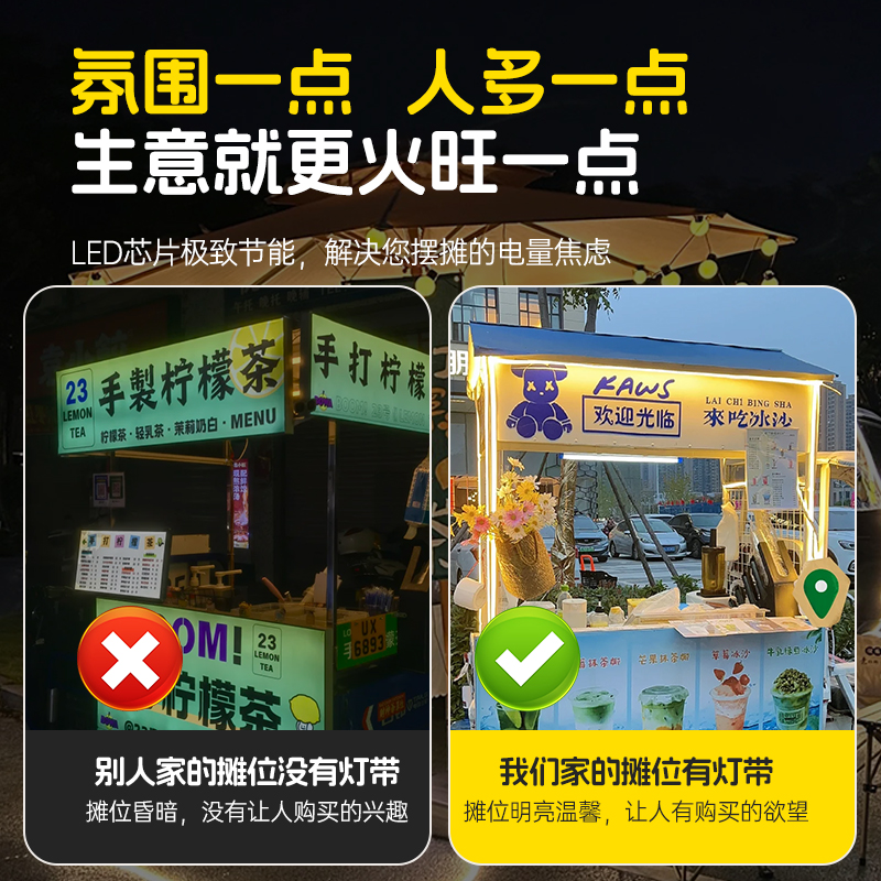 摆摊引流神器 12v24v三轮车电动车插电充电氛围灯带夜市摆摊专用