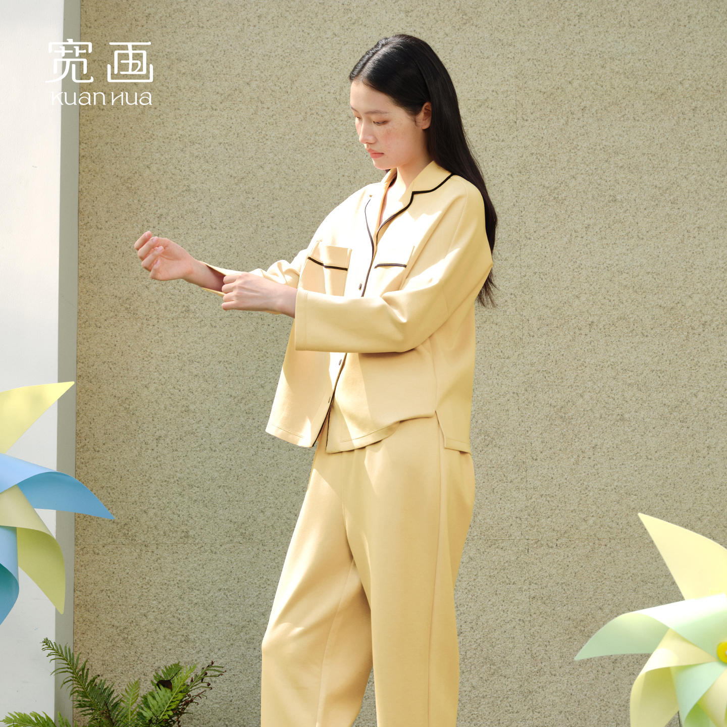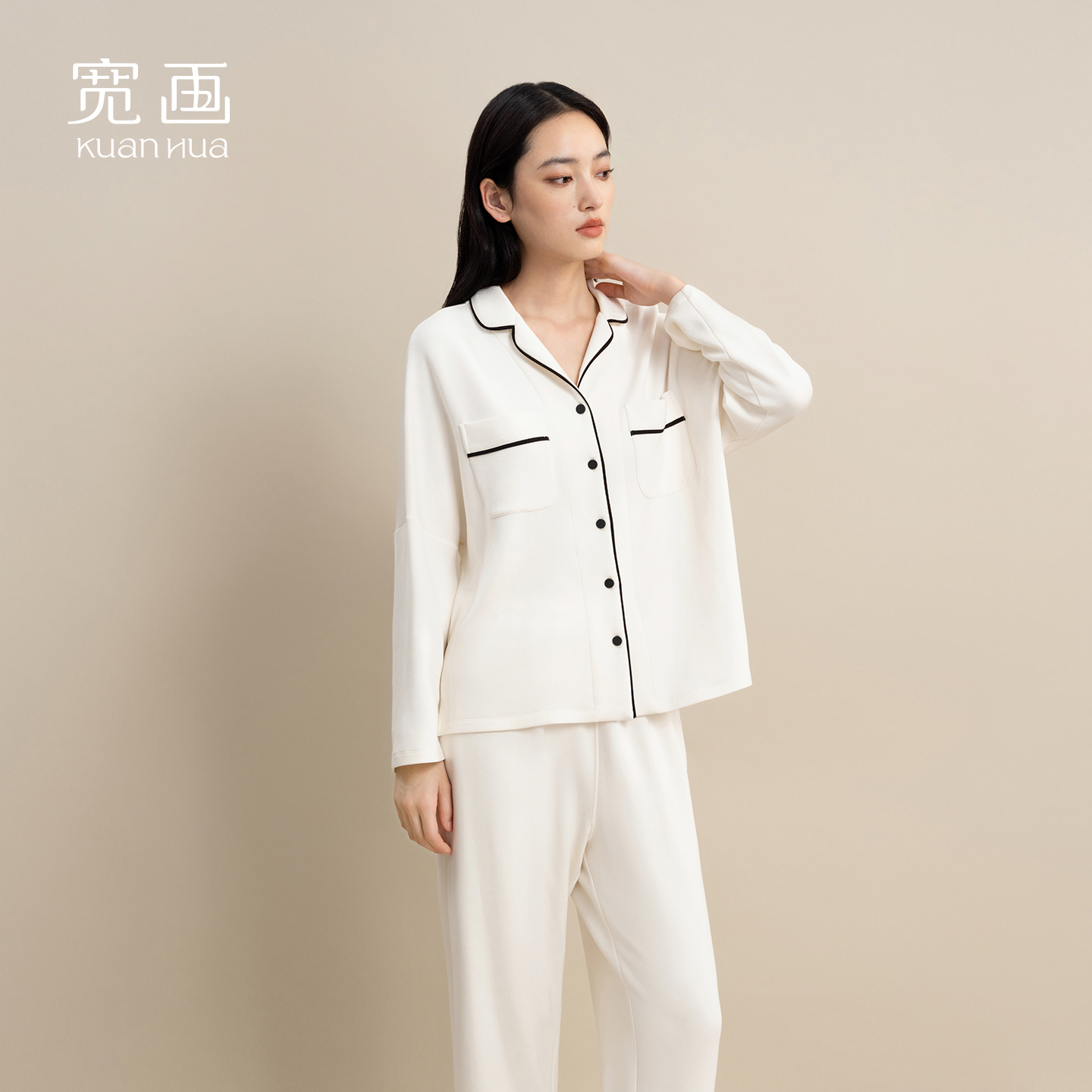 宽画2025秋冬简约休闲柔软亲肤舒适宽松女士纯色可外穿家居服套装