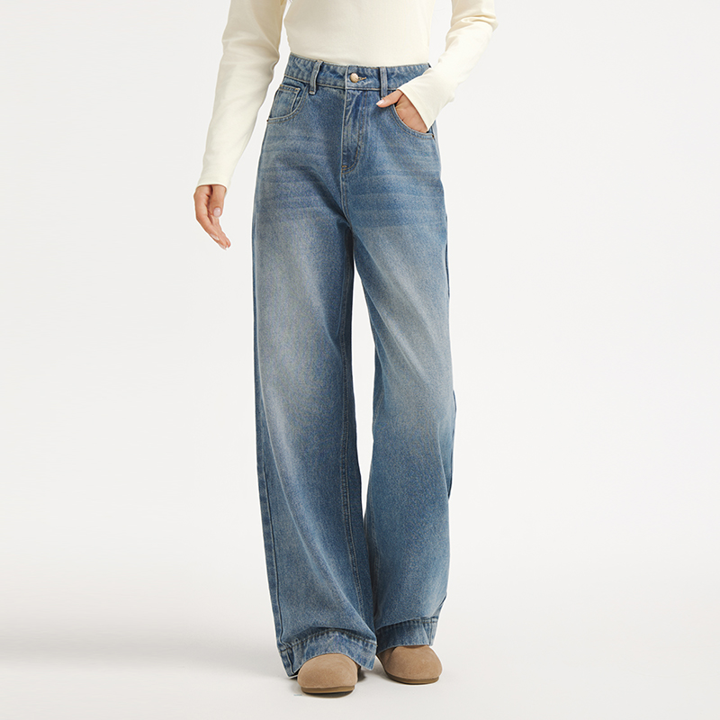 女 宽松显瘦茧型香蕉阔腿牛仔裤 25秋冬新款 太平鸟高腰弯刀牛仔裤