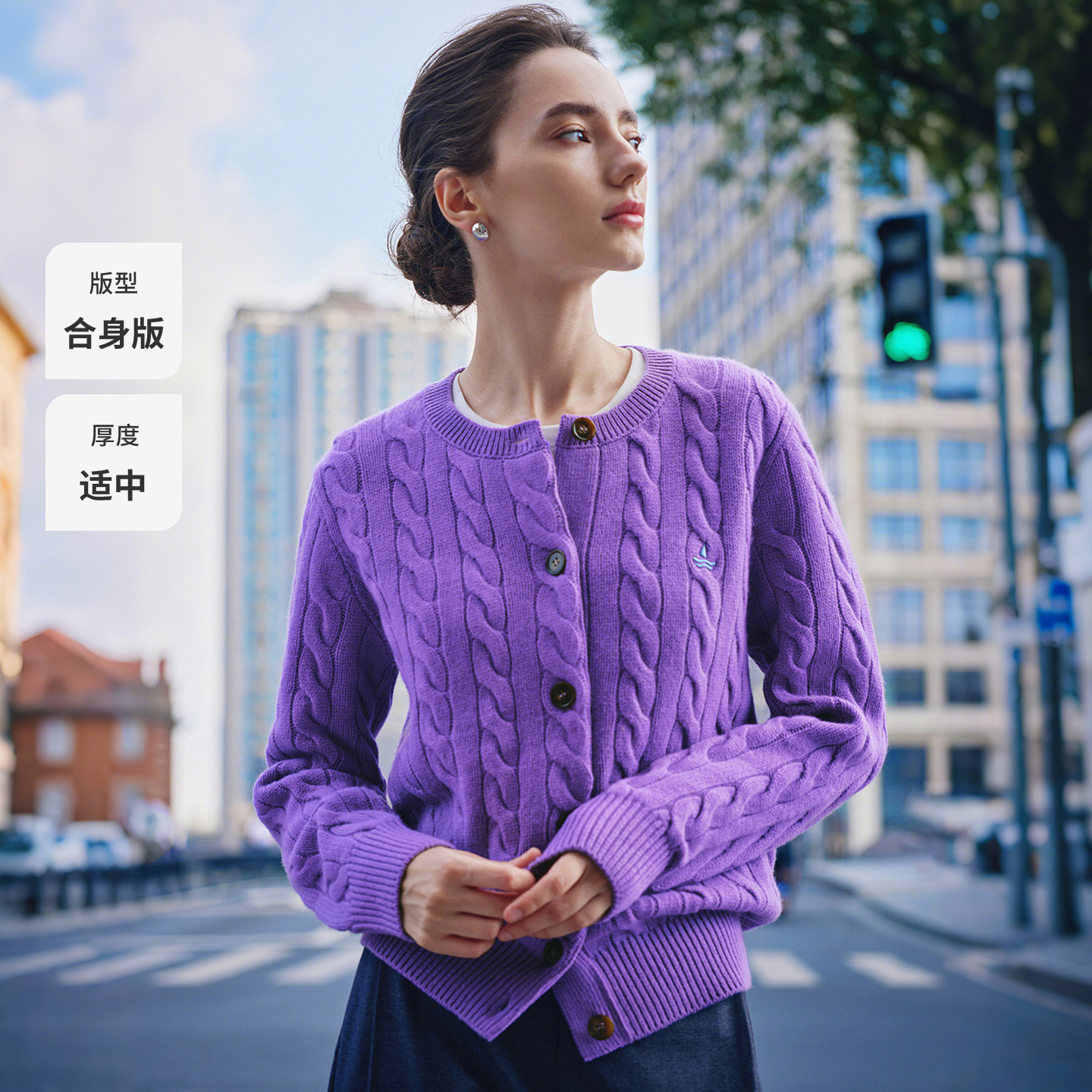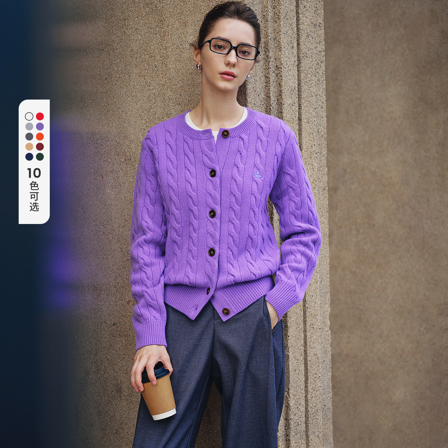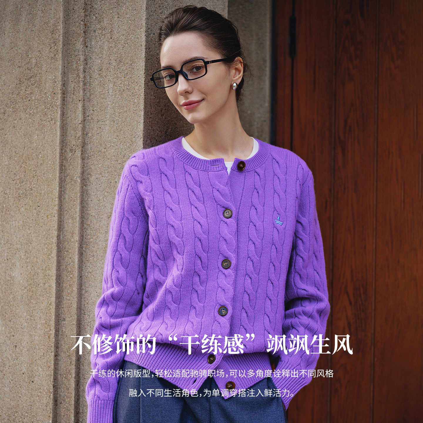 休闲针织开衫 Navigare意大利小帆船绞花毛衣外套女士秋季 纯羊毛