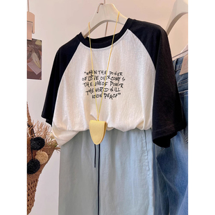 t恤儿童纯棉洋气拼接插肩打底衫 男女童长袖 2025年新款 Dickies童装