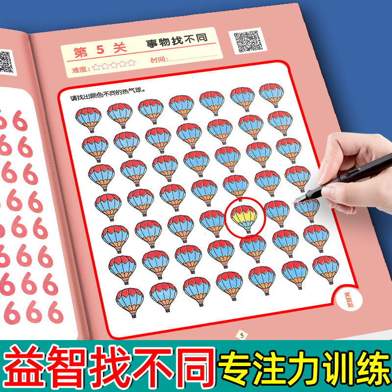 找不同专注力训练2 10岁以上儿童趣味图画书培养宝宝思维启蒙早教益智玩具左右脑智力开发游戏大挑战提高注意力训练书神器