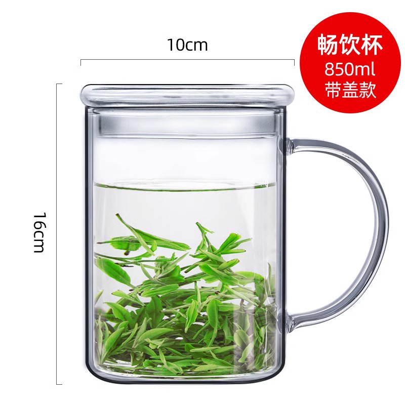 玻璃杯耐热防爆耐高温茶杯1000ml大容量办公室水杯男士 杯子啤酒杯