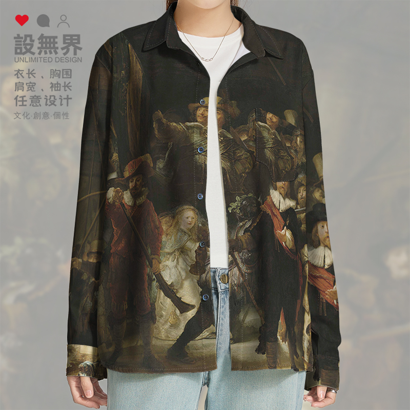 男女ins花衬衣设 衬衫 无界 林荫道夜巡长袖 世界名画米德尔哈尼斯