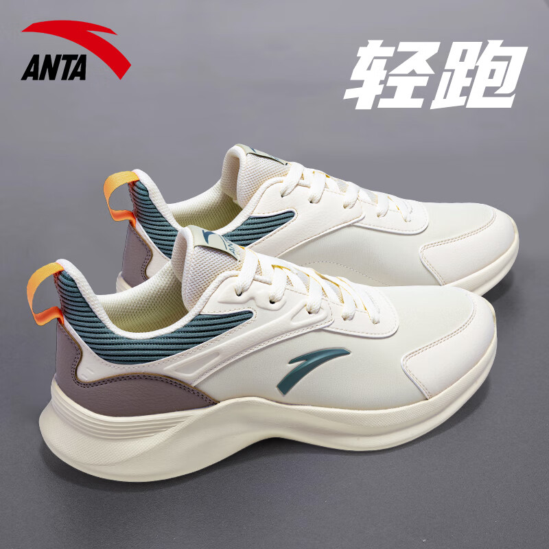 皮面防泼水休闲鞋 2025新款 男跑步减震轻便软底超轻男鞋 安踏运动鞋