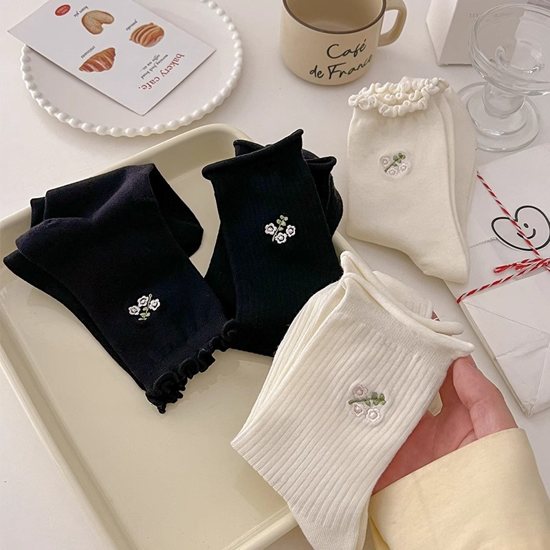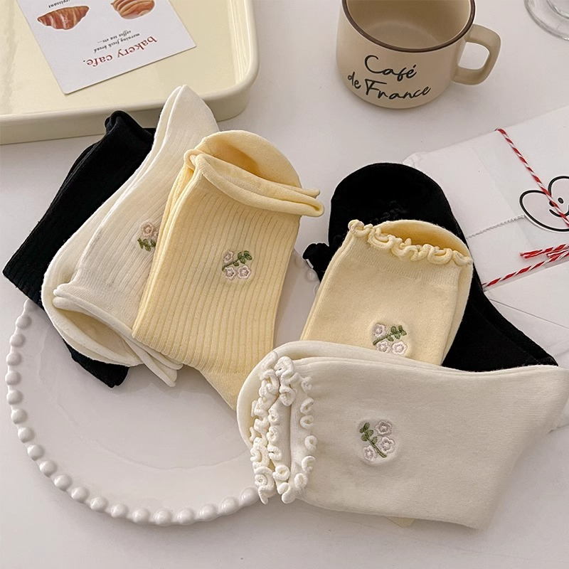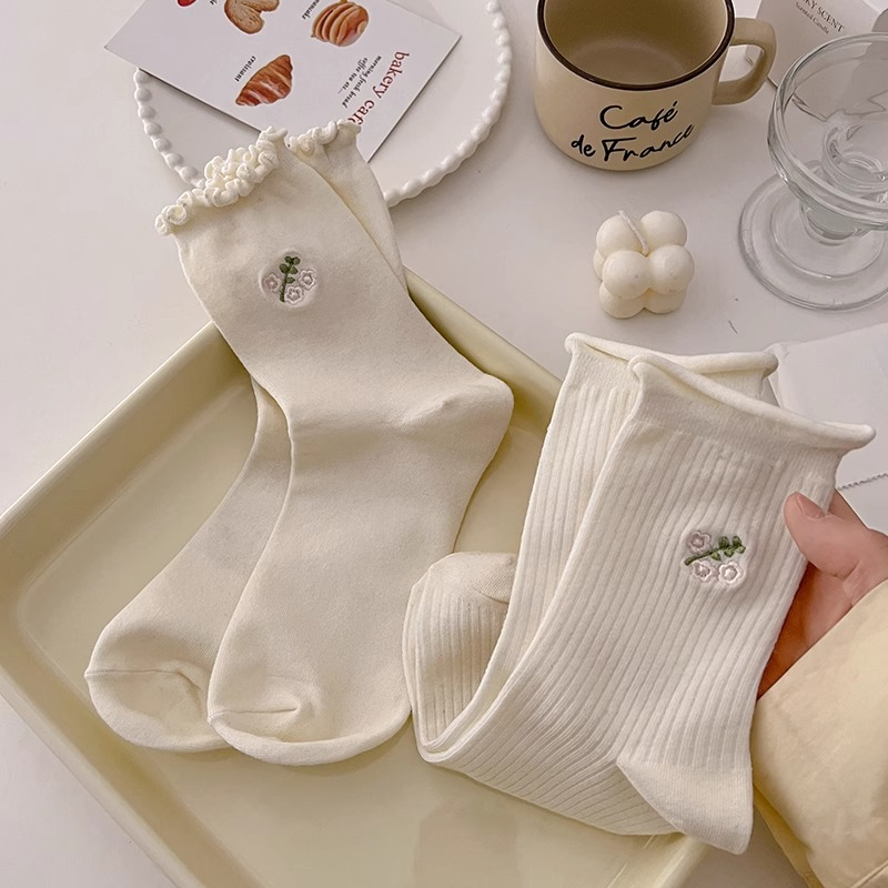 袜子女款 纯棉防臭中筒袜美拉德长筒袜女士加厚保暖堆堆长袜 春秋季