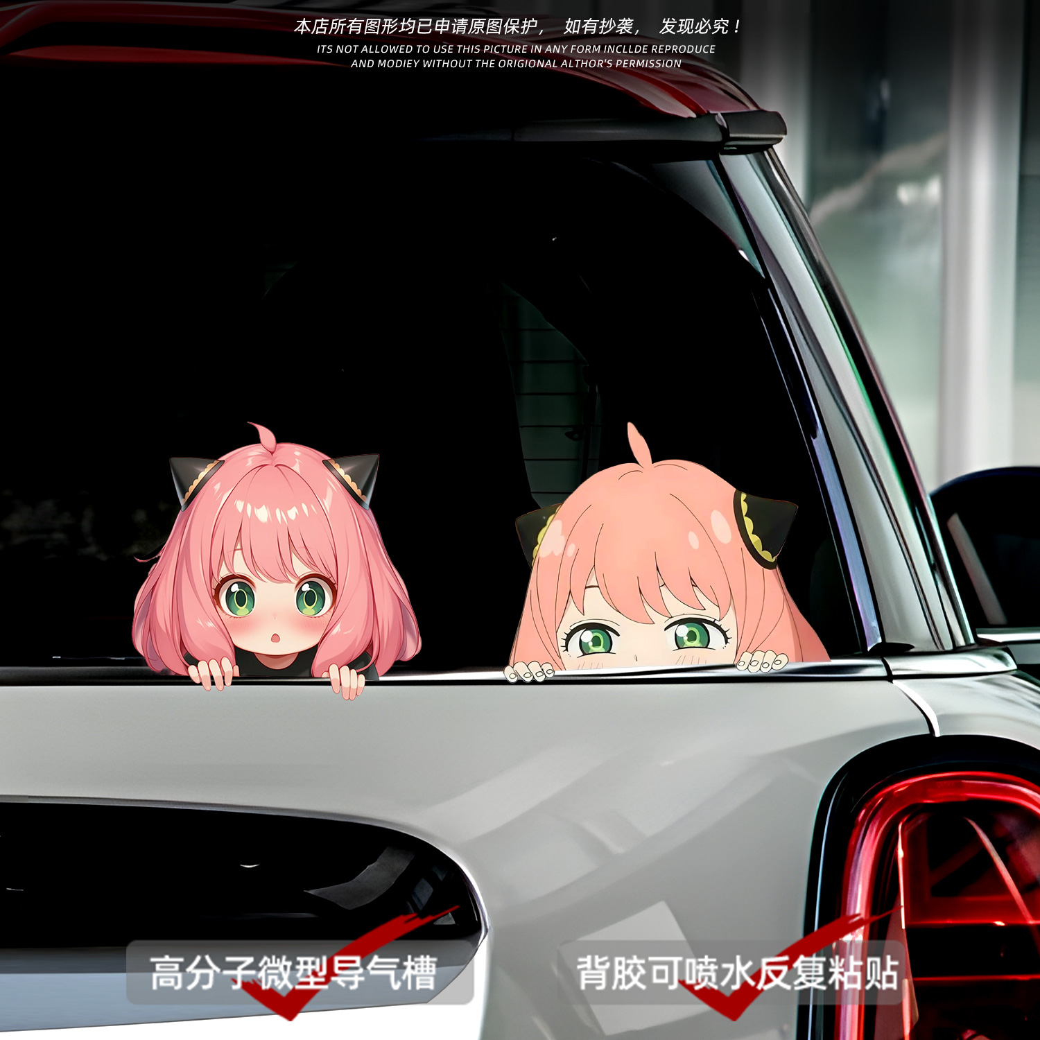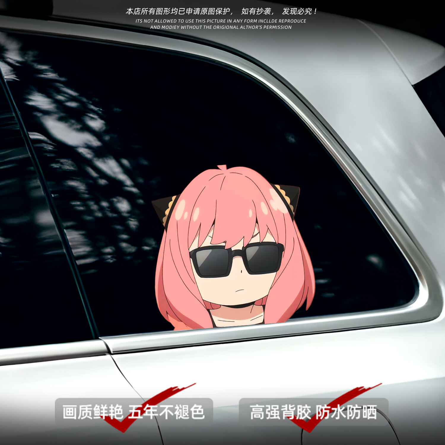 汽车贴纸阿尼亚电动摩托车身划痕遮挡车窗卡通创意装 饰防水贴纸
