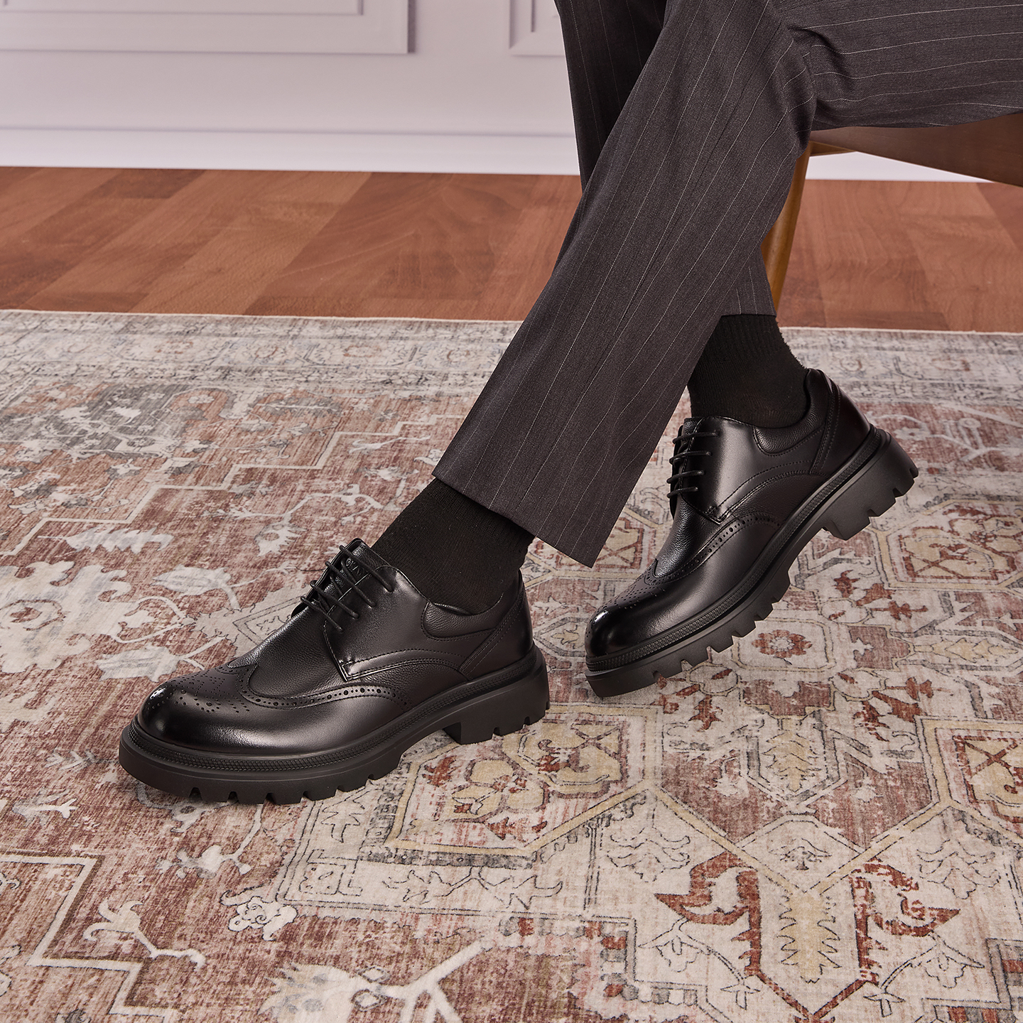男鞋 商务休闲系带厚底皮鞋 2025秋季 布洛克复古雕花正装 新款 奥康