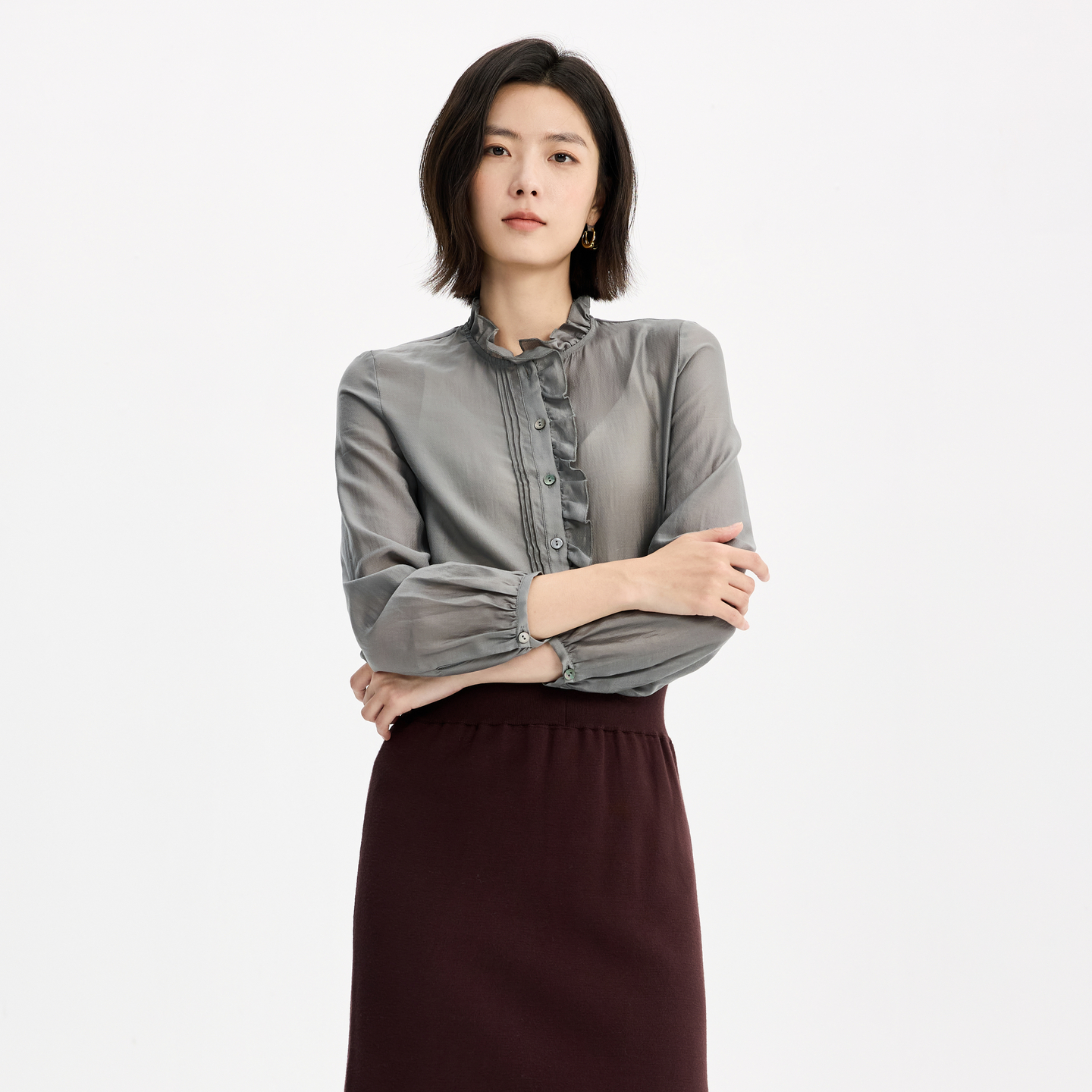 纯色简约气质通勤小衫 飘蕾高级感立领花边衬衫 法式 新款 2025年秋季