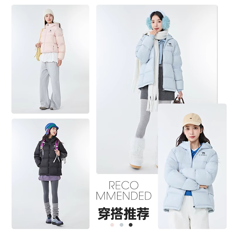 骆驼火山PRO鹅绒服女装 连帽加厚保暖面包羽绒服外套 2025秋冬新款
